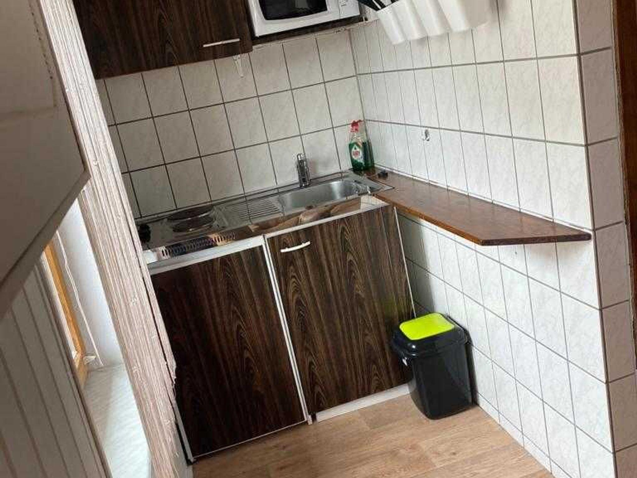 Es befindet sich in dem Bungalow eine Kochgelegenheit mit zwei Herdplatten und einem Kühlschrank, Mikrowelle, Kaffeemaschine, Toaster und Wasserkocher. Ein Backofen ist nicht vorhanden.