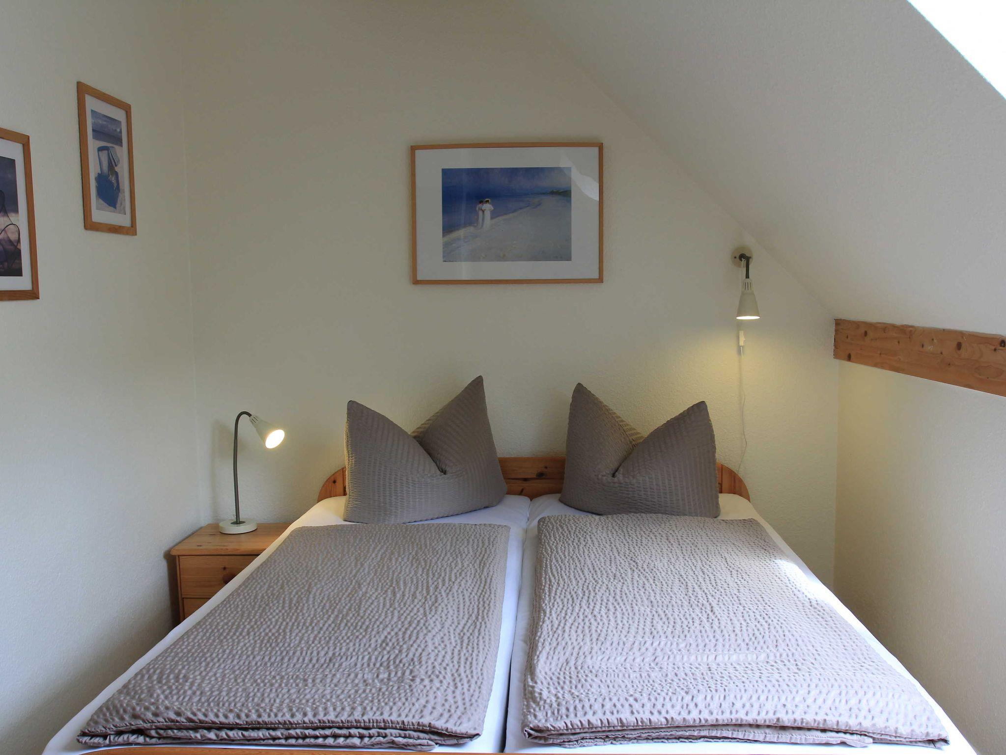 1 Wohnzimmer mit Küche (ausgestattet E-Herd, Geschirrspüler, Mikrowelle, Kühlschrank, Kaffeemaschine,Wasserkocher,Toaster..) 2 Schlafzimmer einmal mit einem 1 Doppelbett 90+90 x 200cm und das 2. Schlafzimmer mit Einzelbetten 100 x 200cm, 1 DU/WC ,Terrasse (mit Gartenmöbeln) PKW-Stellplatz und Fahrradabstellmöglichkeiten vor dem Haus, Wohnung ist für 4+1 Personen (Kind bis 3 Jahre im Kinderbett) geeignet, Kindereisebett und Kinderhochstuhl inklusive