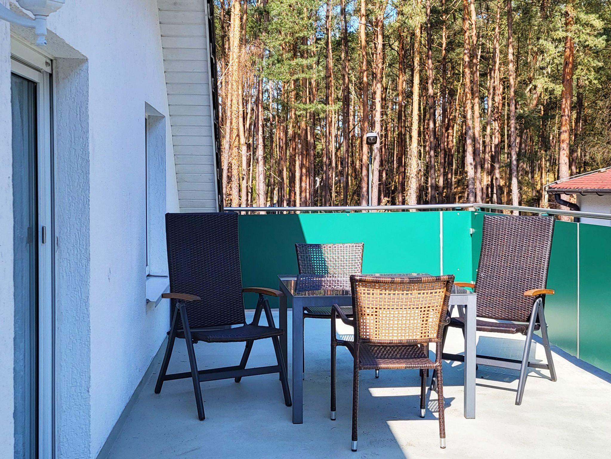 Alle Wohnungen haben eine Terrasse oder Balkon mit Möbeln.
