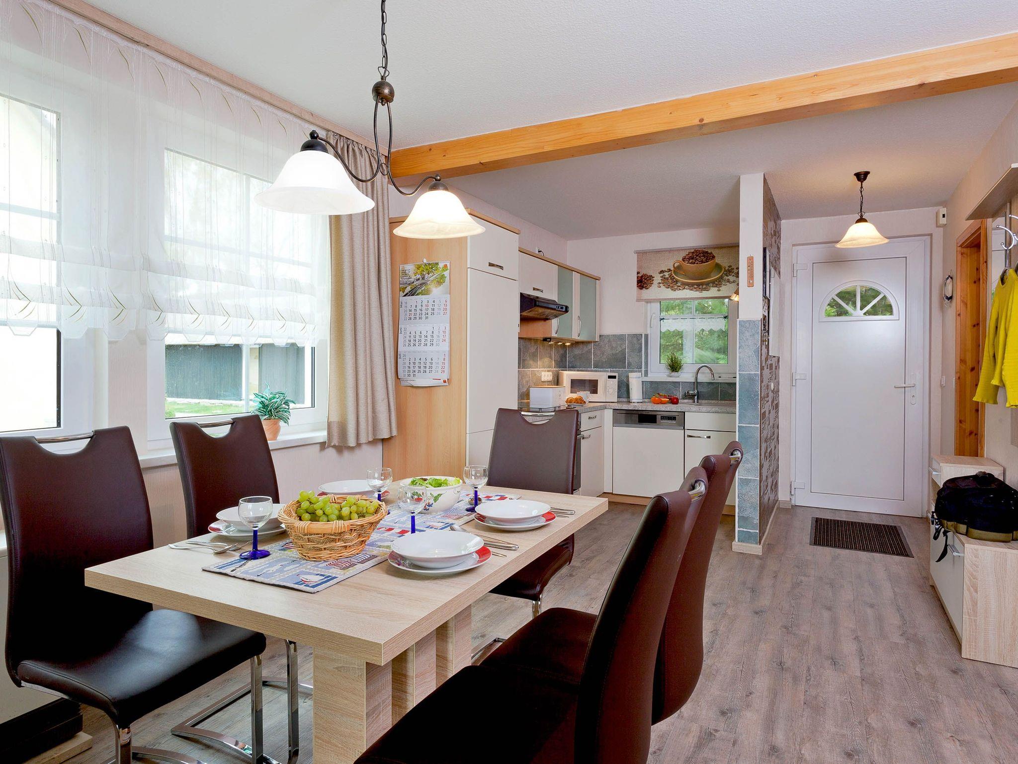 Angrenzend befindet sich eine komplett ausgestattete Küchenzeile mit allem, was Sie benötigen, um Ihre Lieblingsgerichte zuzubereiten. Am großen Esstisch für 6 Personen können Sie dann beisammensitzen und das Essen genießen. Im Erdgeschoss erwartet Sie ein weiteres, praktisches Badezimmer ? ausgestattet mit einer Waschmaschine, die Ihnen maximalen Komfort während Ihres Aufenthalts bietet!