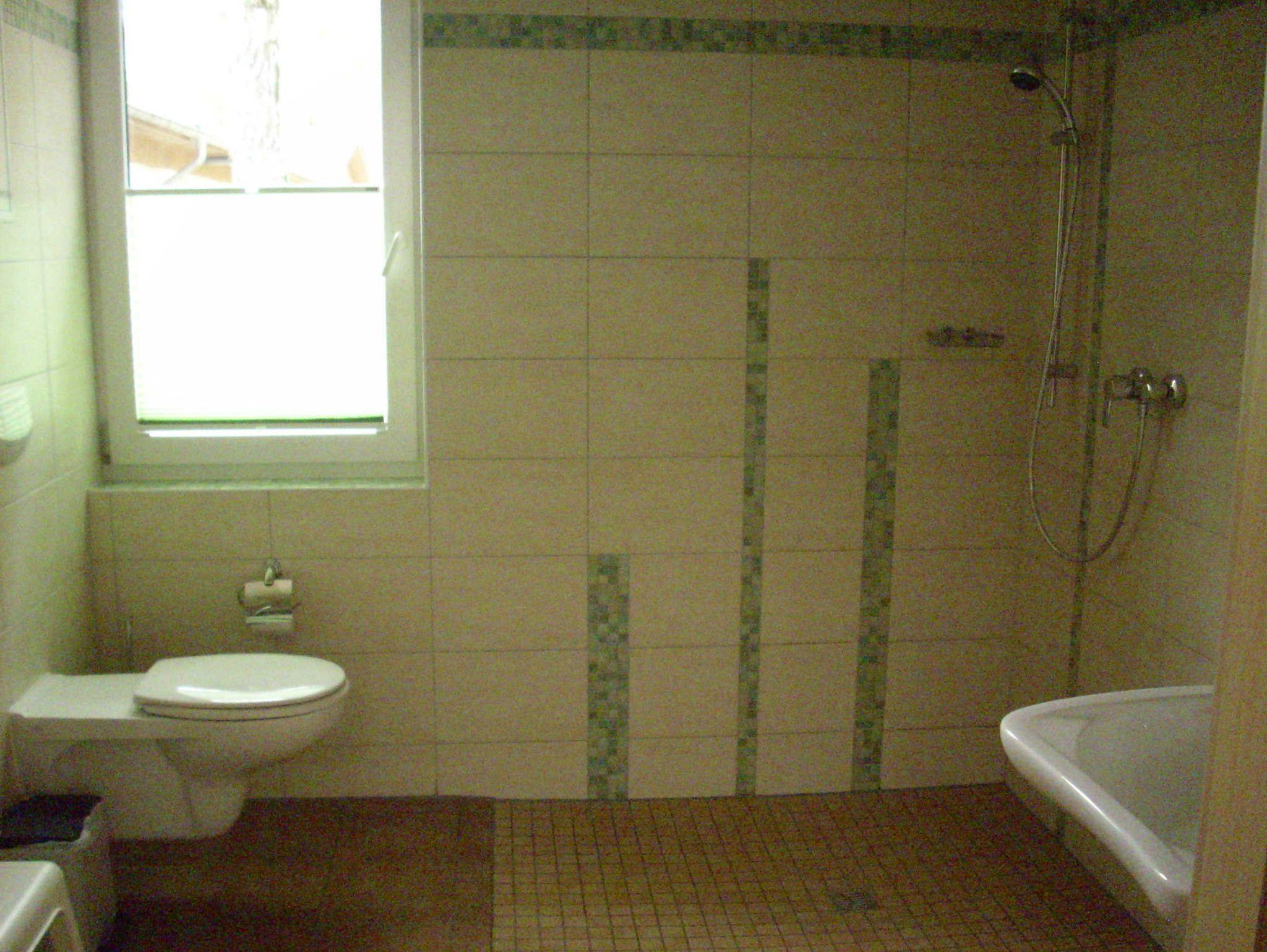 Das Bad ist barrierefrei mit ebenerdiger Dusche, es gibt noch eine zusätzliche Toilette,