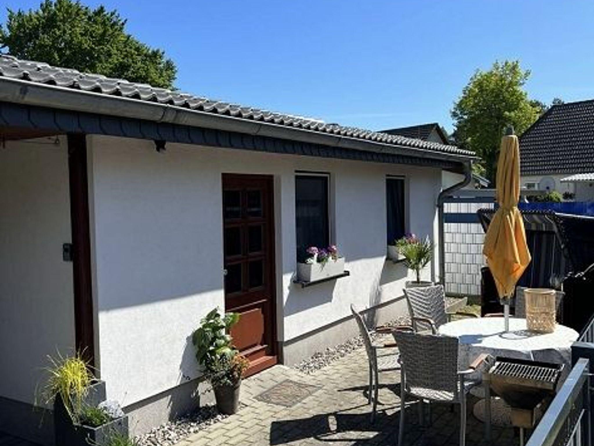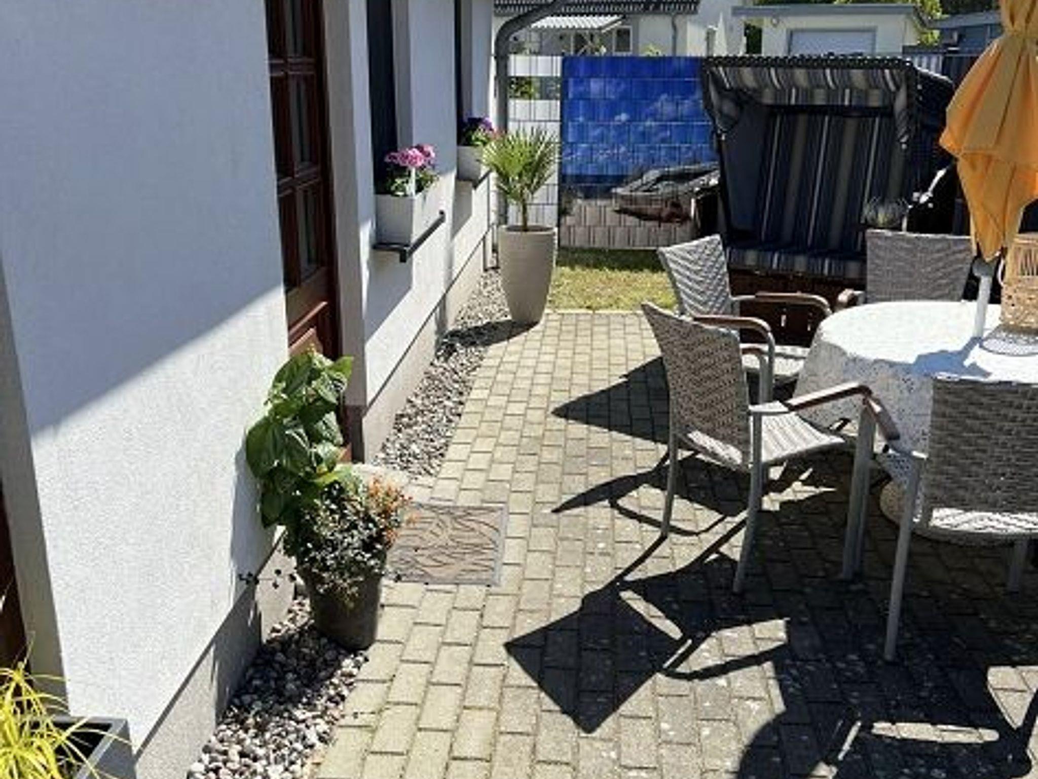 Der Außenbereich bietet eine möblierte Terrasse mit Strandkorb und Grillmöglichkeit. Außerdem ist ein Carport als Unterstellmöglichkeit für Ihr Auto vorhanden.