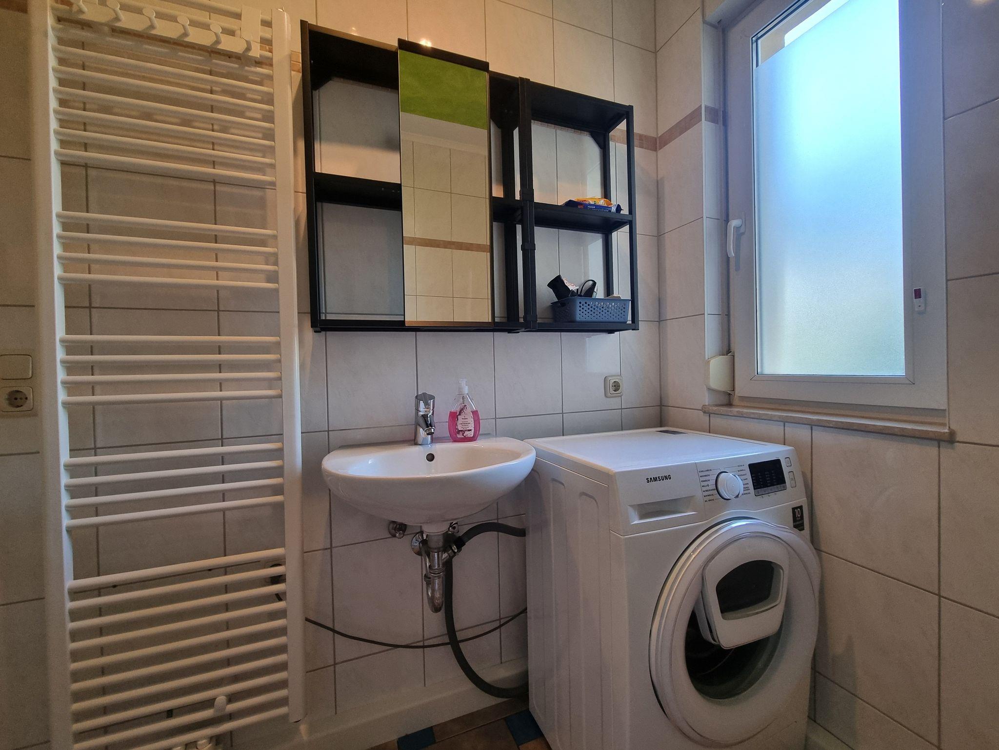 Die Ferienwohnung verfügt über 2 Schlafräume (1x Doppelbett, 1x 1 Doppelstockbett und zus. TV), einer voll ausgestatteten Küche mit Backofen, Kühlschrank mit Gefrierfach, Wasserkocher, Toaster und Kaffeemaschine. Der Wohn- und Essbereich verfügt über einen Flat-TV und einen Kamin für gemütliche Stunden. Das Badezimmer ist mit Dusche/WC, Waschmaschine und Fön ausgestattet. Die Fußböden sind teilweise mit Teppich im Wohn- und Schlafbereich, mit Linoleum im Küchen- und Essbereich und mit Fliesen im Bad ausgelegt. Die Wohnung hat eine separate Sitzmöglichkeit im Außenbereich. Ein PKW-Stellplatz und WLAN stehen Ihnen kostenfrei zur Verfügung.