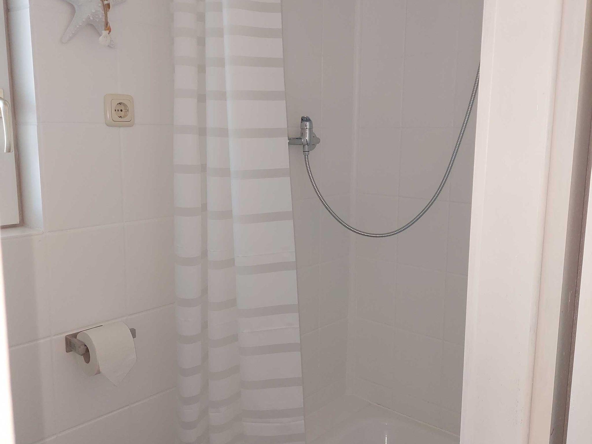 Das Bad ist ausgestattet mit WC und Dusche.