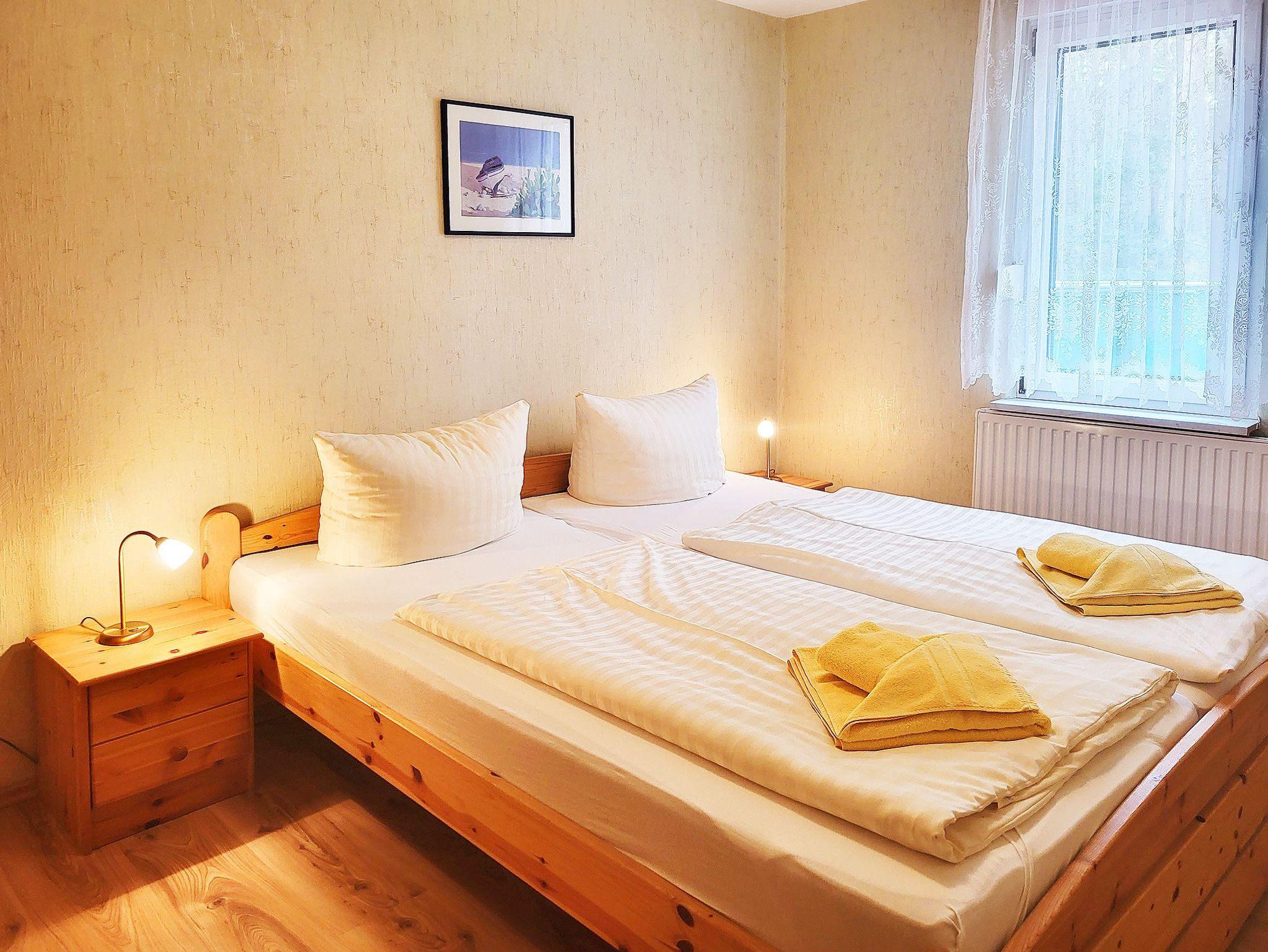 2 Raum-Wohng. bis 2 Pers., 1 SZ, Küche, Wohnzimmer, Bad, mit Dusche/WC, Flur, Terrasse o. Balkon. Frühstücksbüfett mit Voranmeldung möglich und auch Abendessen à la carte. Haustiere nur auf Anfrage!