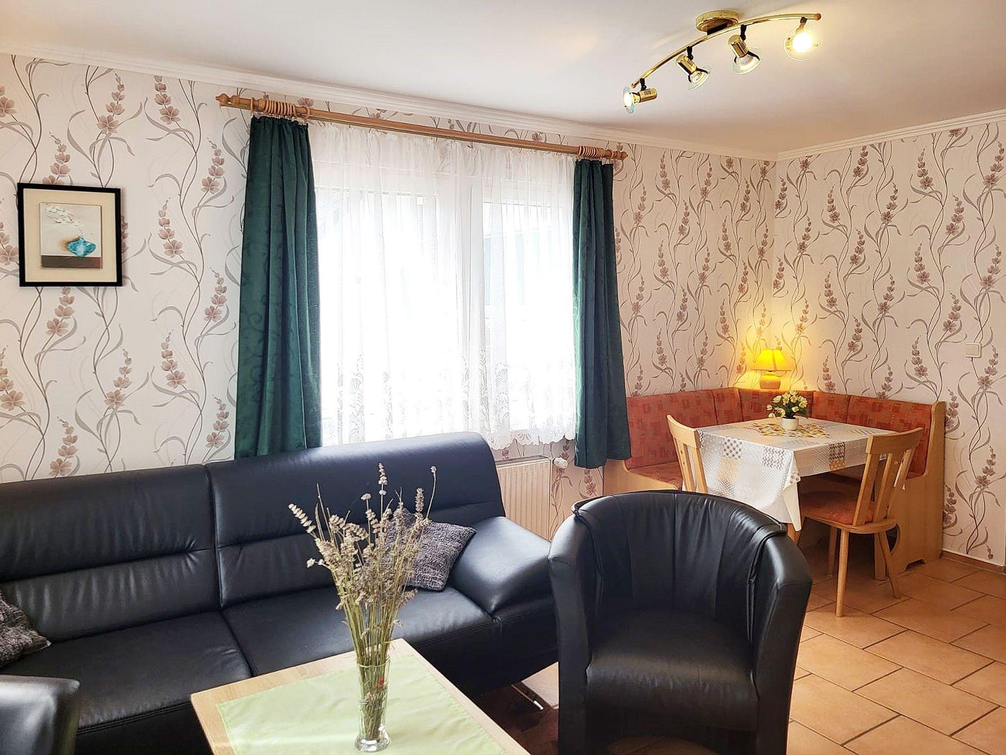 2 Raum-Wohng., 1 SZ mit 1 DB und 1 EB, Küche, Wohnzimmer, Bad mit Dusche/WC, Flur, Terrasse, Frühstücksbüfett mit Voranmeldung möglich und auch Abendessen à la carte. Haustiere nur auf Anfrage!