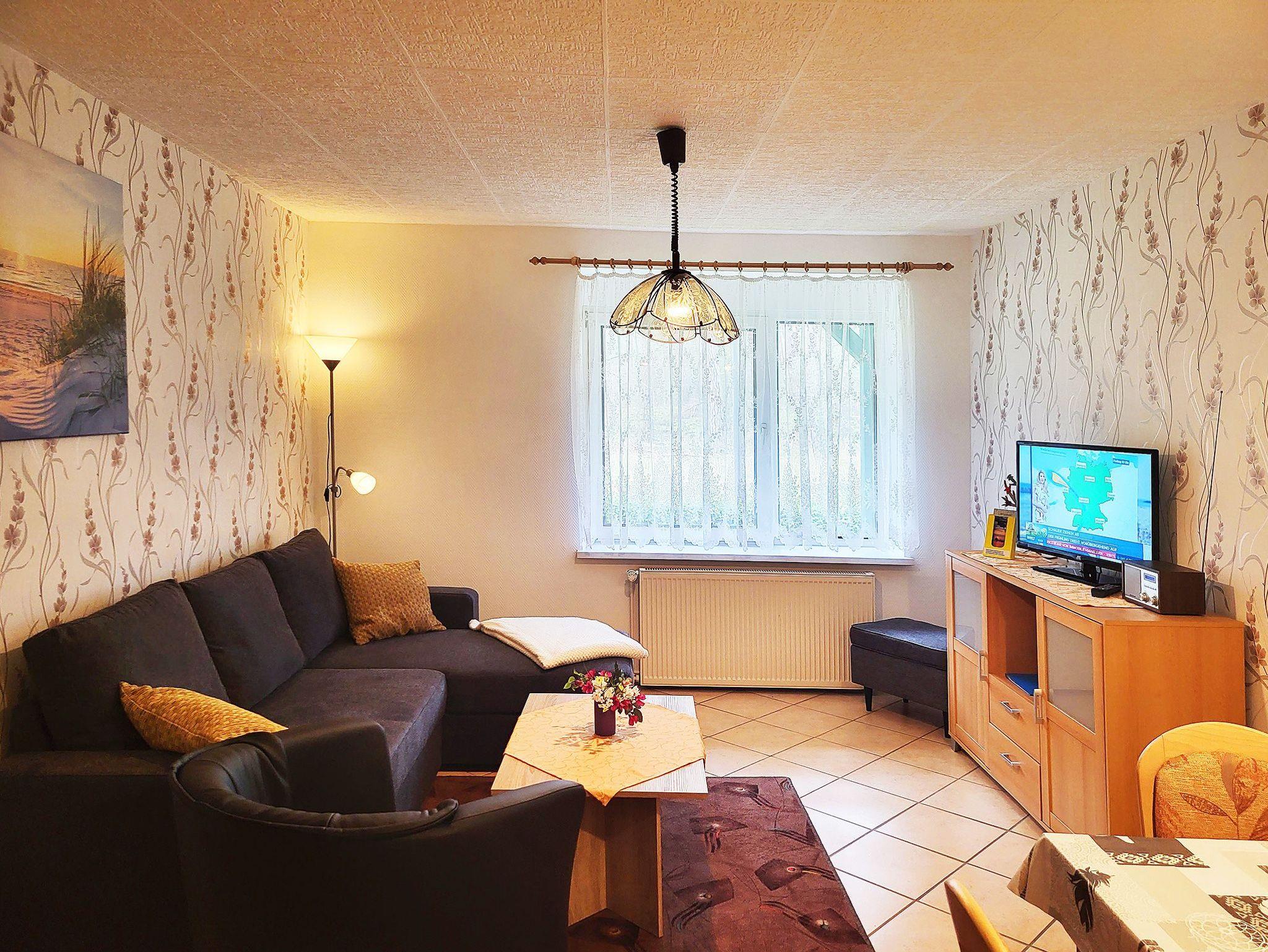 2 Raum-Wohng., 1 SZ mit 1 DB und 1 EB, Küche, Wohnzimmer, Bad mit Dusche/WC, Flur, Terrasse, Frühstücksbüfett mit Voranmeldung möglich und auch Abendessen à la carte. Haustiere nur auf Anfrage!