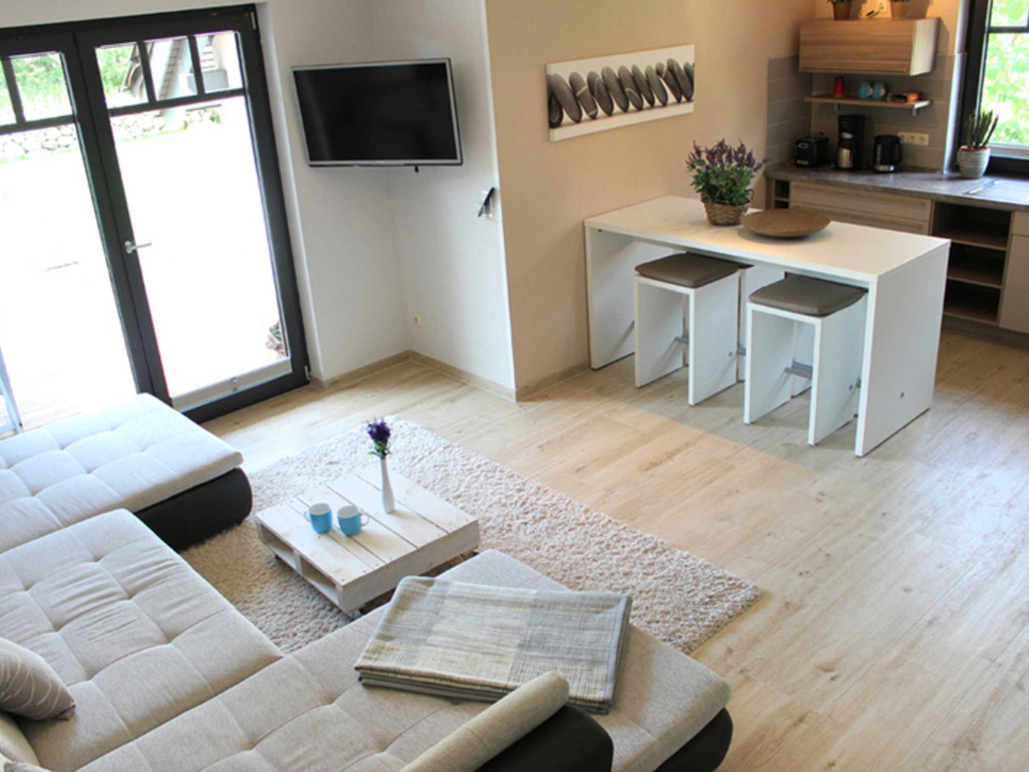 Besuchen Sie uns Ferienwohnungen Urlaubslust Trassenheide. Die 2 Raum Wohnung ist ca. 70 m² groß und wurde 2013 fertiggestellt. Sie hat einen großen kombinierten Wohn-/Essbereich (amerikanische Küche) mit Couch sowie eine voll ausgestattete Küche mit Esstisch für 4 Personen.Weiterhin befindet sich im Wohnzimmer ein Kamin. Es gibt ein Schlafzimmer mit einem Doppelbet und großem Kleiderschrank. Die Couch im Wohnbereich ist für 2 Aufbettungen nutzbar. In der Küche finden Sie einen Induktionsherd mit Backofen, Toaster, Kaffeemaschine, Wasserkocher, Kühlschrank und Spülmaschine. Das Bad/WC ist mit einer großen Dusche, einem Fön und Handtuchhaken ausgestattet.