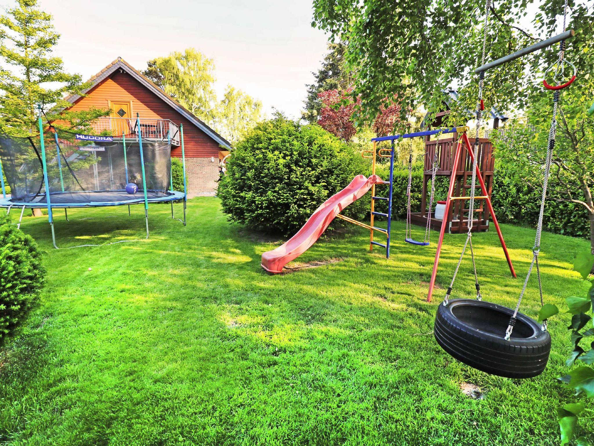 Der vollständig umzäunte Garten, der Spielbereich mit einem Trampolin und einem kleinen Baumhaus kann während Ihres Aufenthaltes von Ihren Kindern genutzt werden. Mit dem nur 1 km entfernten Kinderland ist das Objekt ideal für einen Familienurlaub geeignet.