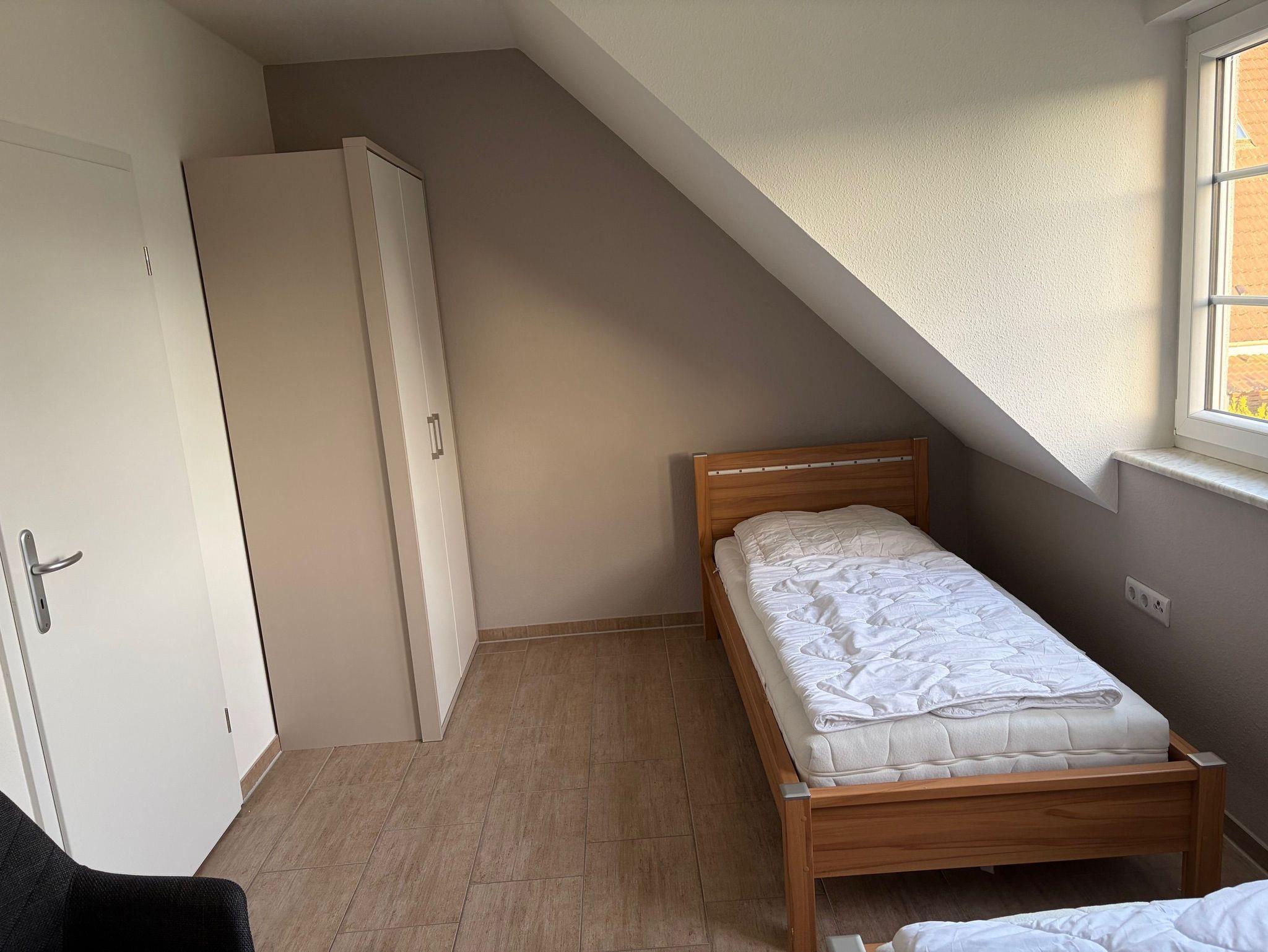 - 1 Schlafzimmer mit 2 Einzelbetten je 1 x 90 x 200 cm im Obergeschoß,