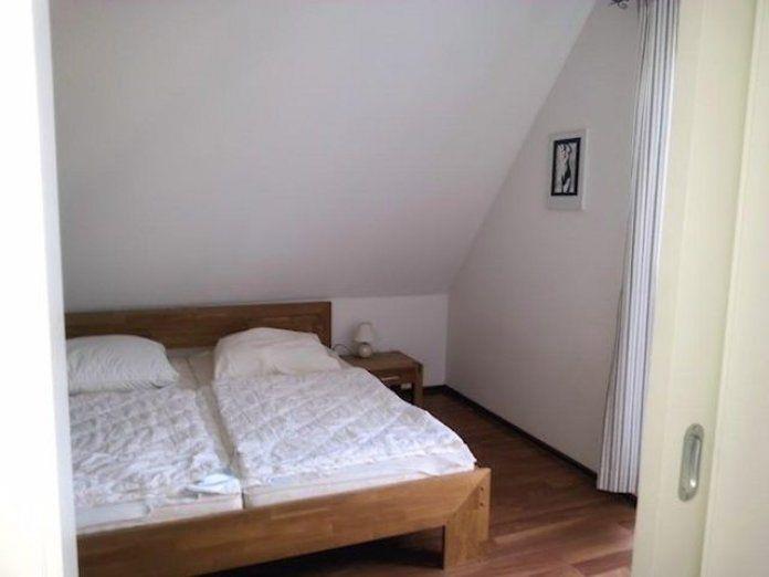 Unteres Schlafzimmer: Das erste Schlafzimmer befindet sich im unteren Bereich der Wohnung und ist mit einem gemütlichen Doppelbett (2 x 90 x 200 cm) ausgestattet. Hier können Sie sich nach einem erlebnisreichen Tag zurückziehen und erholsame Nächte verbringen.