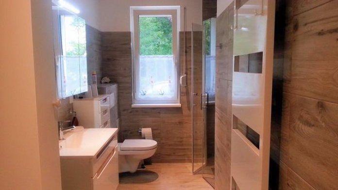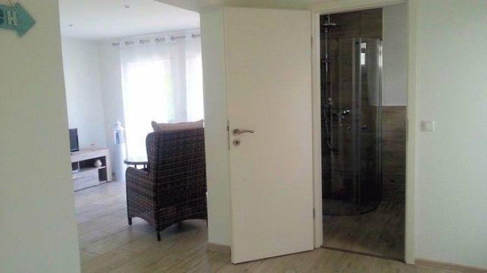 Badezimmer: Ein Duschbad mit ebenerdiger Dusche.