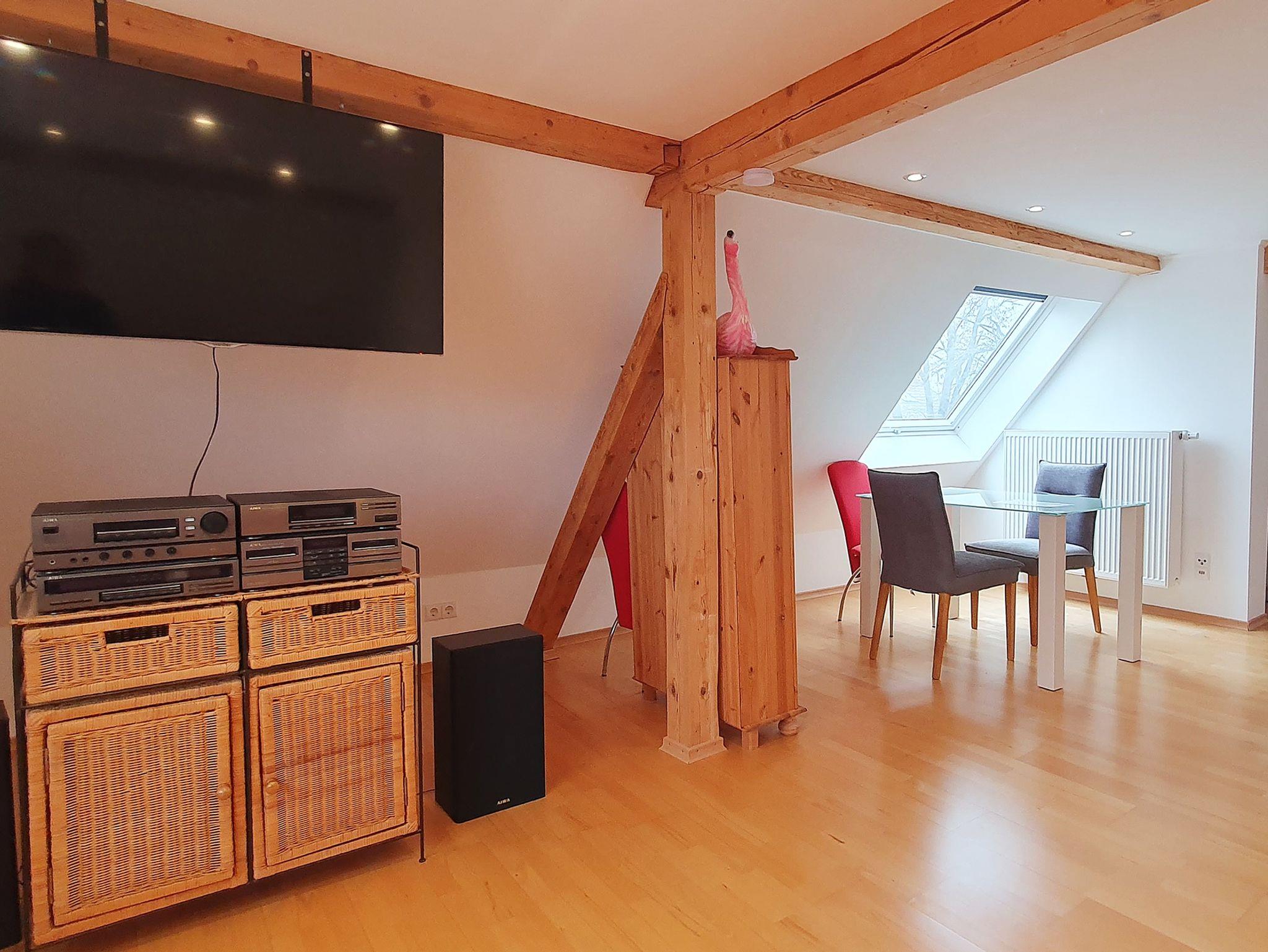 In der Wohnung befindet sich eine voll ausgestattete Küche, ein Wohnzimmer mit Essecke, ein Schlafzimmer mit Doppelbett, ein Schlafzimmer mit zwei einzelnen Betten sowie eine Schlafcouch im Wohnzimmer. Ein neu renoviertes Bad mit Dusche und WC.