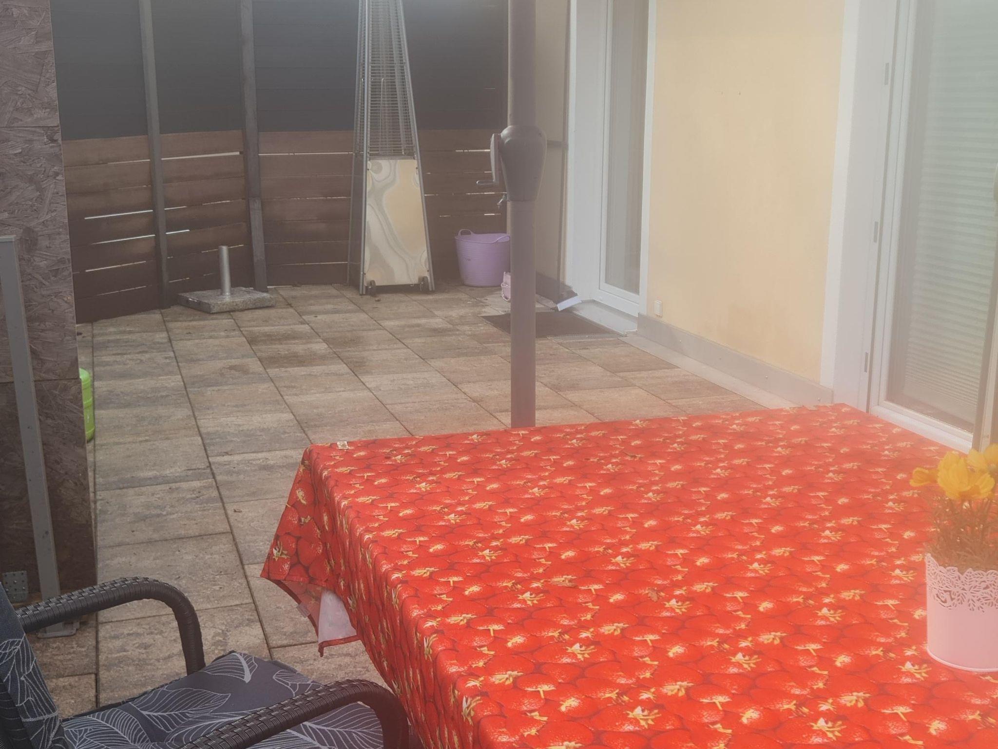 Von dieser Wohnung aus haben Sie Zutriitt auf die Terrasse. Die Terrasse kann abgesperrt werden, damit die Kinder geschützt sind. Tisch und 5 Stühle sind da ebenso ein Kindertisch und 2 Stühle.