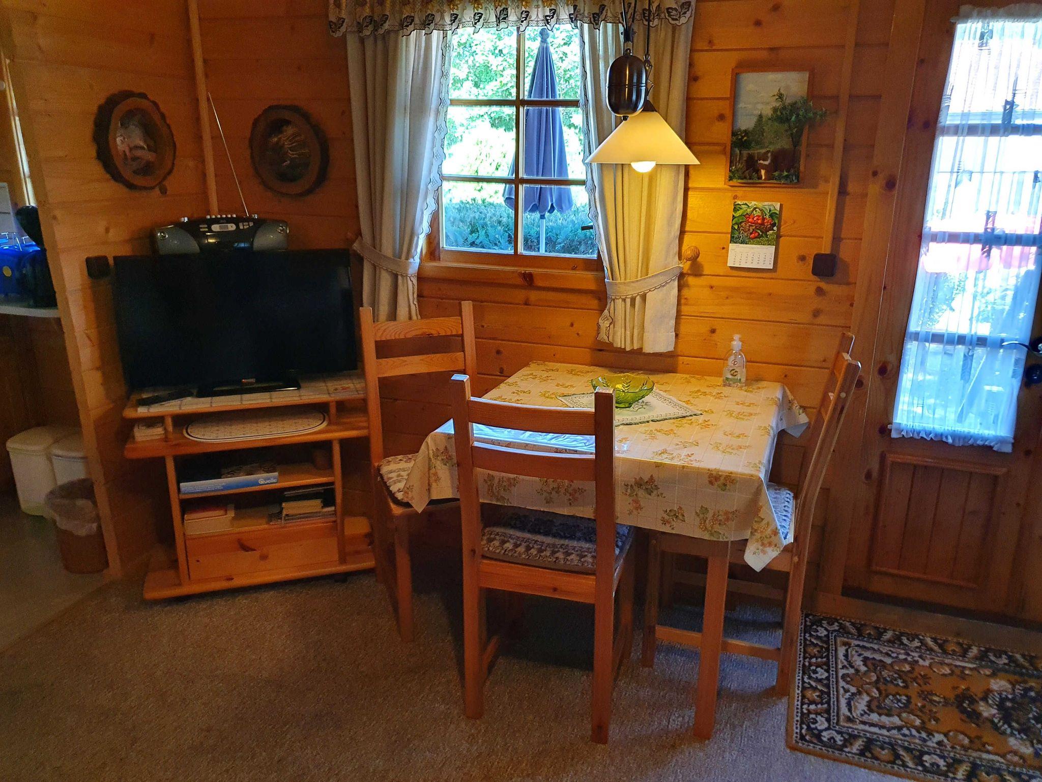 Unser Blockhaus mit dem Namen „Onkel Thom´s Hütte“ befindet sich im hinteren Teil unseres Grundstückes und ist ein uriges Holzhaus mit eigener kleinen Holzterrasse. Wir bieten auf gemütliches 35 qm Platz für 2 ? 3 Personen, aufgeteilt auf ein Wohnzimmer mit Ethanol-Kamin und Schlafcouch, Küchennische, Schlafzimmer und Bad mit Dusche.