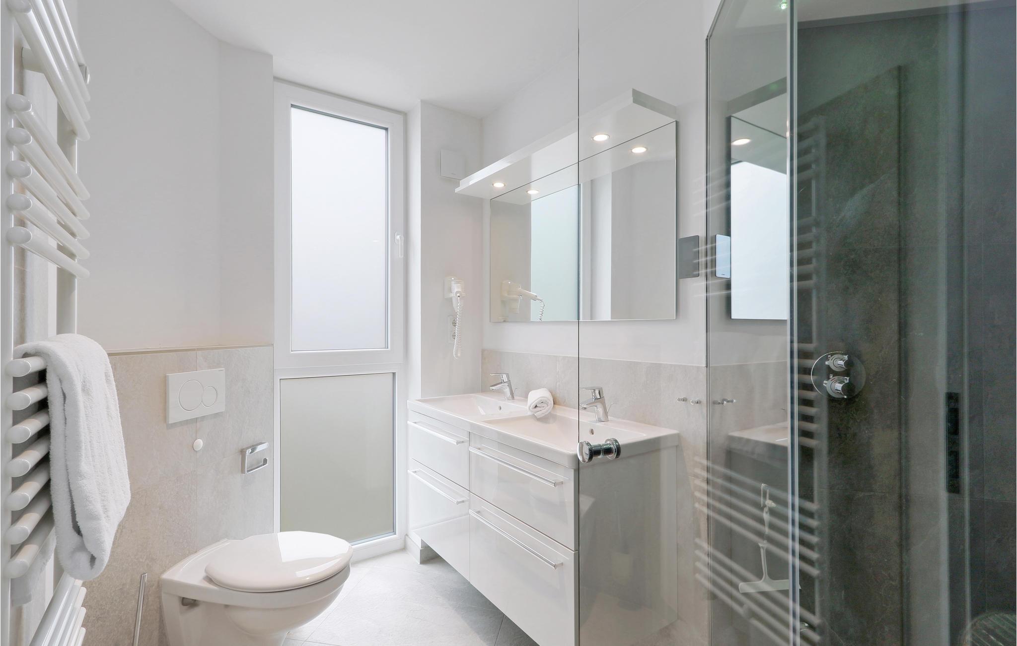 Noget særligt at badeværelset, der er jeres helt personlige lille wellnessområde med gulvvarme, dampbad med integreret regnskovsbruser. Ikke nok med det, når badet er slut, kan I sætte jer foran de flakkende flammer i bioetanol-kaminen, som giver et hyggeligt lys.