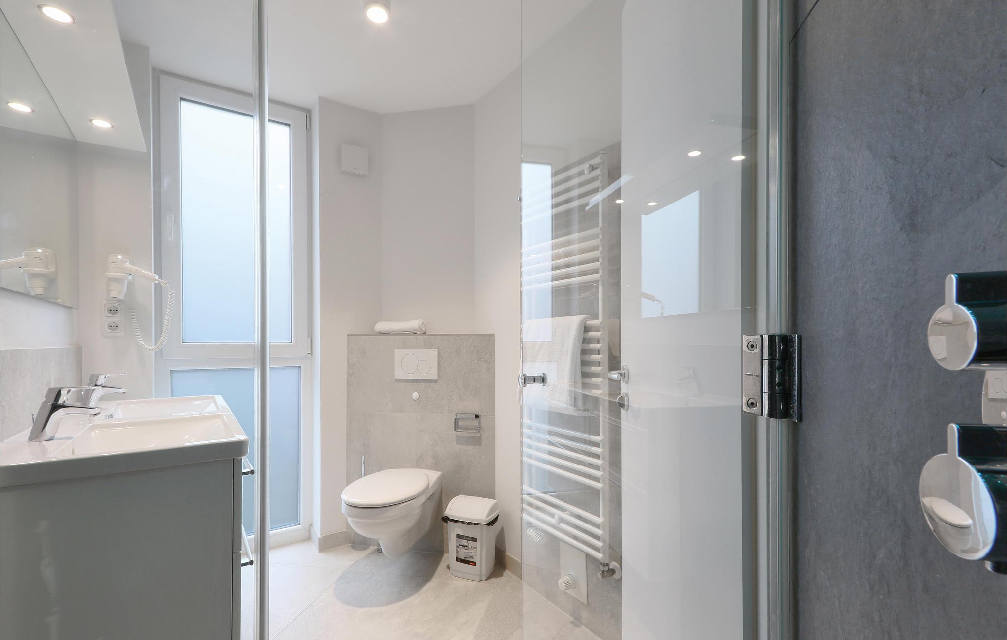Badeværelse (nr. 1) - WC. Varmt og koldt vand. Bruser