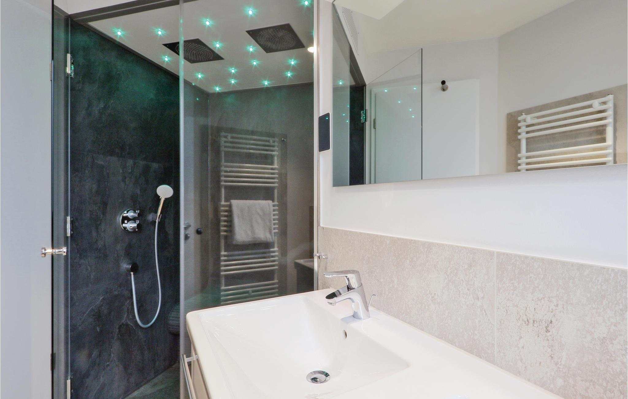 Begge soveværelser har hver en dobbeltseng. Endnu en sovemulighed finder I i stuen, hvor der en sovesofa til to personer. Noget særligt at badeværelset, der er jeres helt personlige lille wellnessområde med gulvvarme, dampbad med integreret regnskovsbruser. Her kan I slappe af og lade tankerne glide på langfart, glemme alt om hverdagens problemer og lade de flade batterier op igen. Ikke nok med det, når badet er slut, kan I sætte jer foran de flakkende flammer i bioetanol-kaminen, som giver et hyggeligt lys.