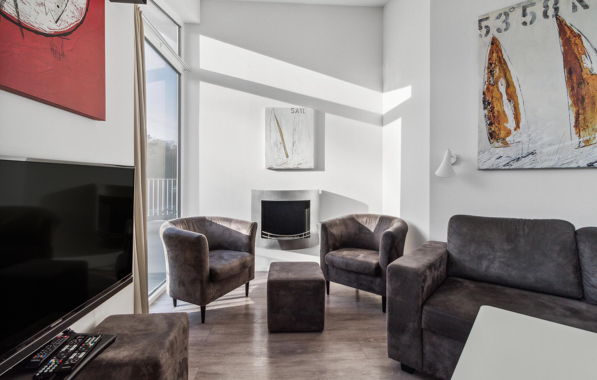 Tilbring jeres ferie i denne luksuriøse penthouselejlighed i ferieområdet BeachBay. Her på Priwall i Travemünde ligger klitvillaerne omgivet af natur og lever fuldt ud op til deres navn. Udsigten over det anlagte klitlandskab er enestående. De eksklusive penthouselejligheder strækker sig over 2. sal i villaen, der er bygget i strandhusstil.
