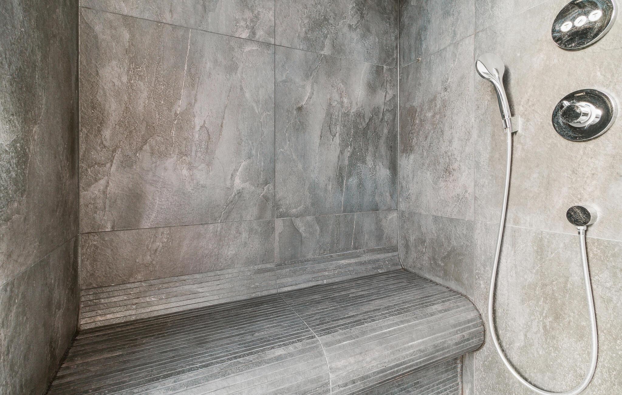 De tre soveværelser er hver udstyret med en rummelig dobbeltseng. Som en ekstra soveplads finder I en sovesofa til to personer i opholdsrummet. Et af soveværelserne har direkte adgang til badeværelset. Her kan I nyde den unikke udsigt fra spabadet eller den dobbelte regnbruser. Bioethanolpejsen giver stuen et hyggeligt lys.