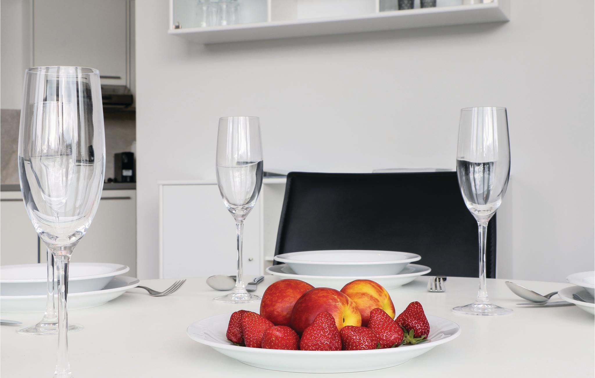 Lejligheden har desuden et moderne entertainment-system med bluray-afspiller, to fjernsyn, og et musikanlæg med mp3-tilslutning. I receptionen kan I leje en kikkert, så I kan følge med i det spændende fugleliv i området. I køkkenet finder kaffeentusiaster en Nespresso-maskine (tag selv kapsler med) samt termokande og filtre til at brygge selv, hvis I foretrækker filterkaffe.