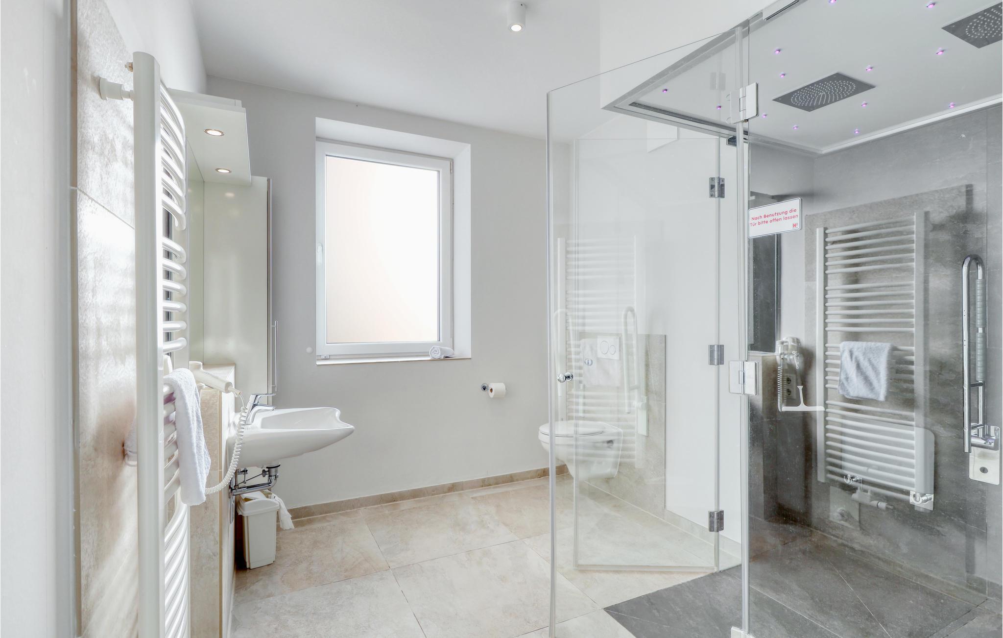 Noget helt særligt er badeværelset som er et personligt lille wellnessområde med dampbad, integreret regnvandsbruser – også med adgang i kørestol. Her kan I glemme alt om den travle hverdags mange udfordringer.