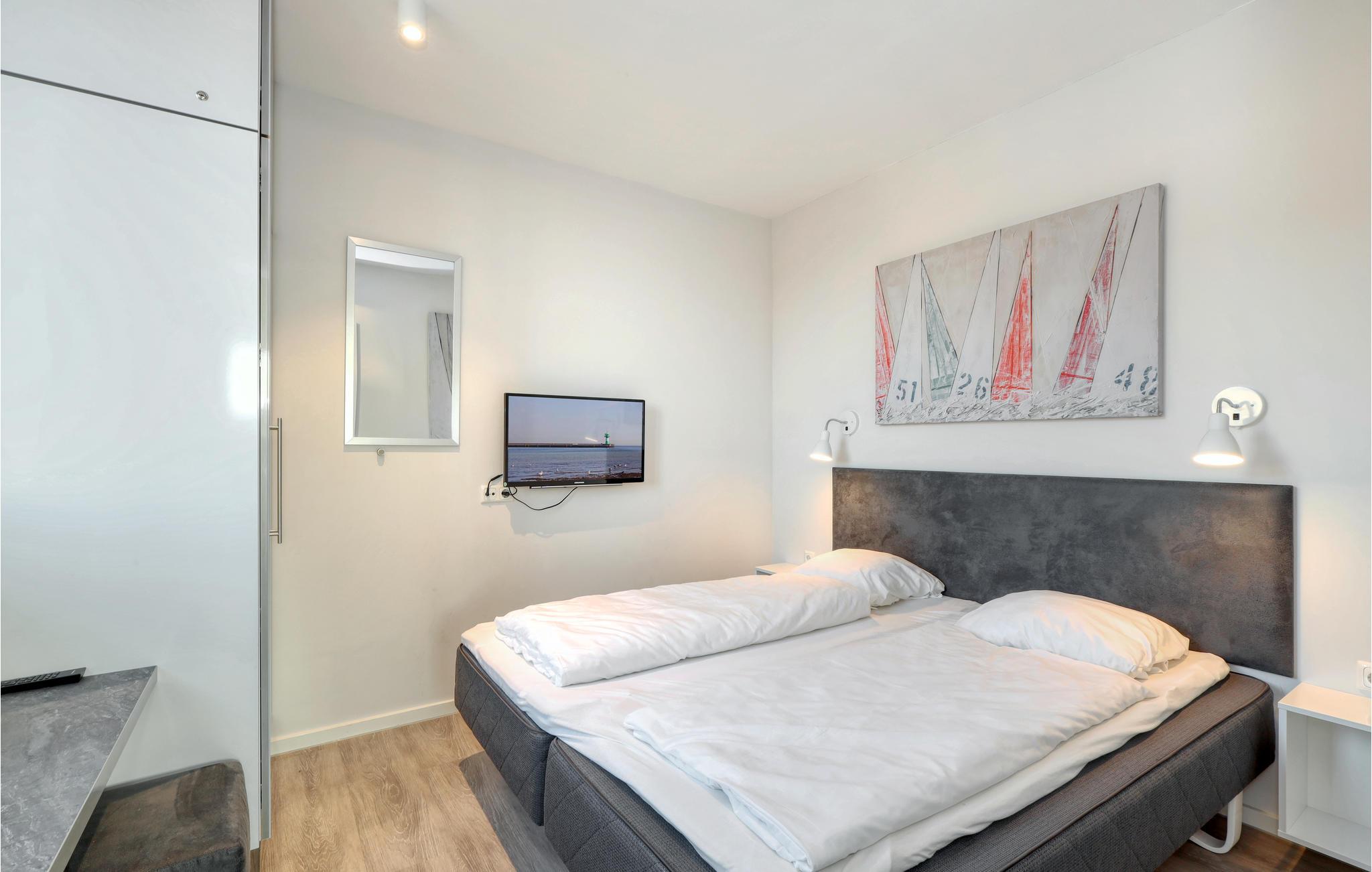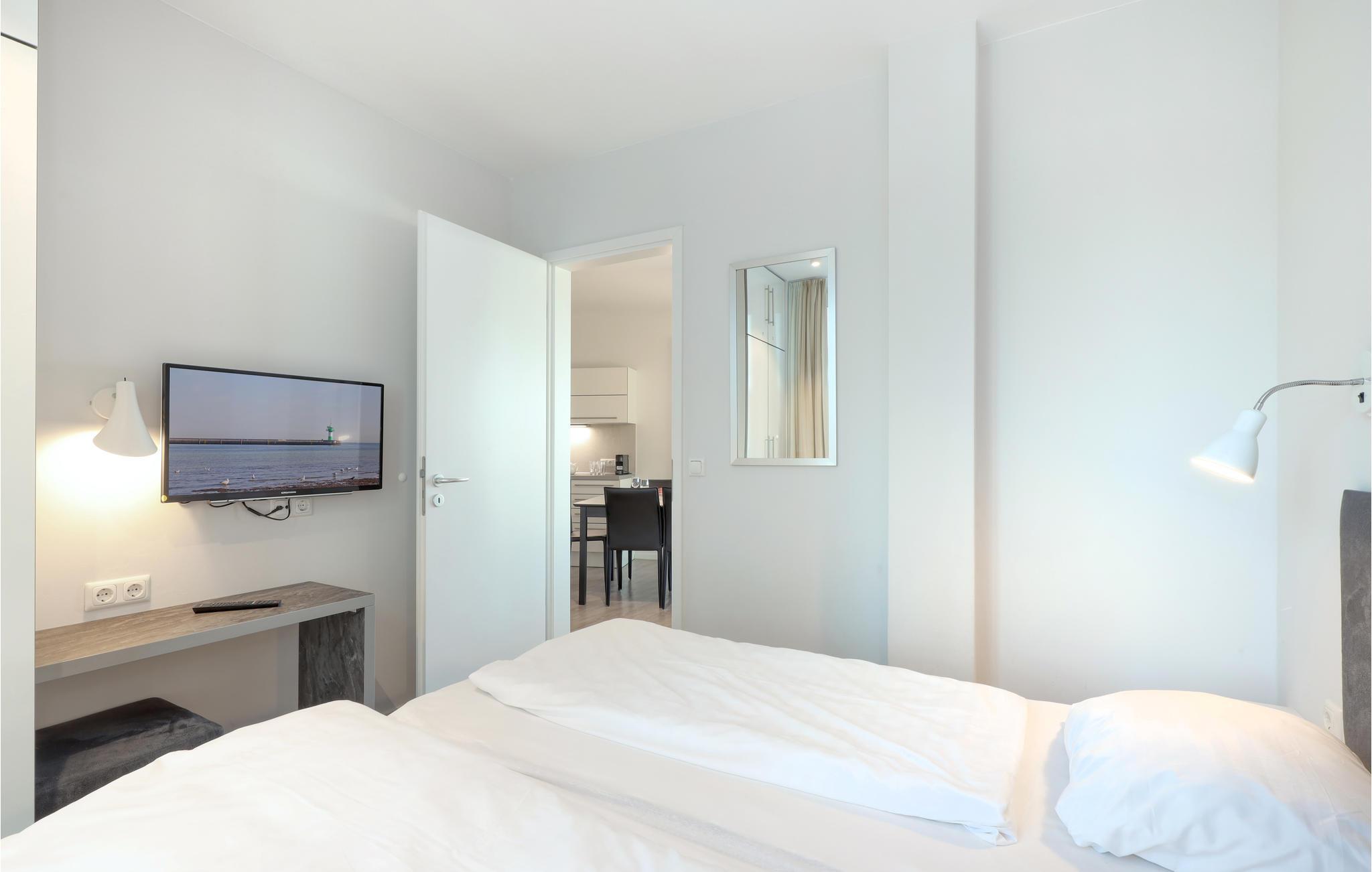 Selvfølgelig er der også et moderne entertainment-anlæg i ferielejligheden ved TBeachBay, Blu-ray, musikanlæg og tv. I kan mod at betale pant, leje en kikkert i receptionen, så I kan holde øje med alt der foregår i havnen, på havet og på den anden side af Trave. I kan også nyde ferielivet i stuen foran kaminens flakkende flammer (bioethanol) som giver en særlig intim stemning.