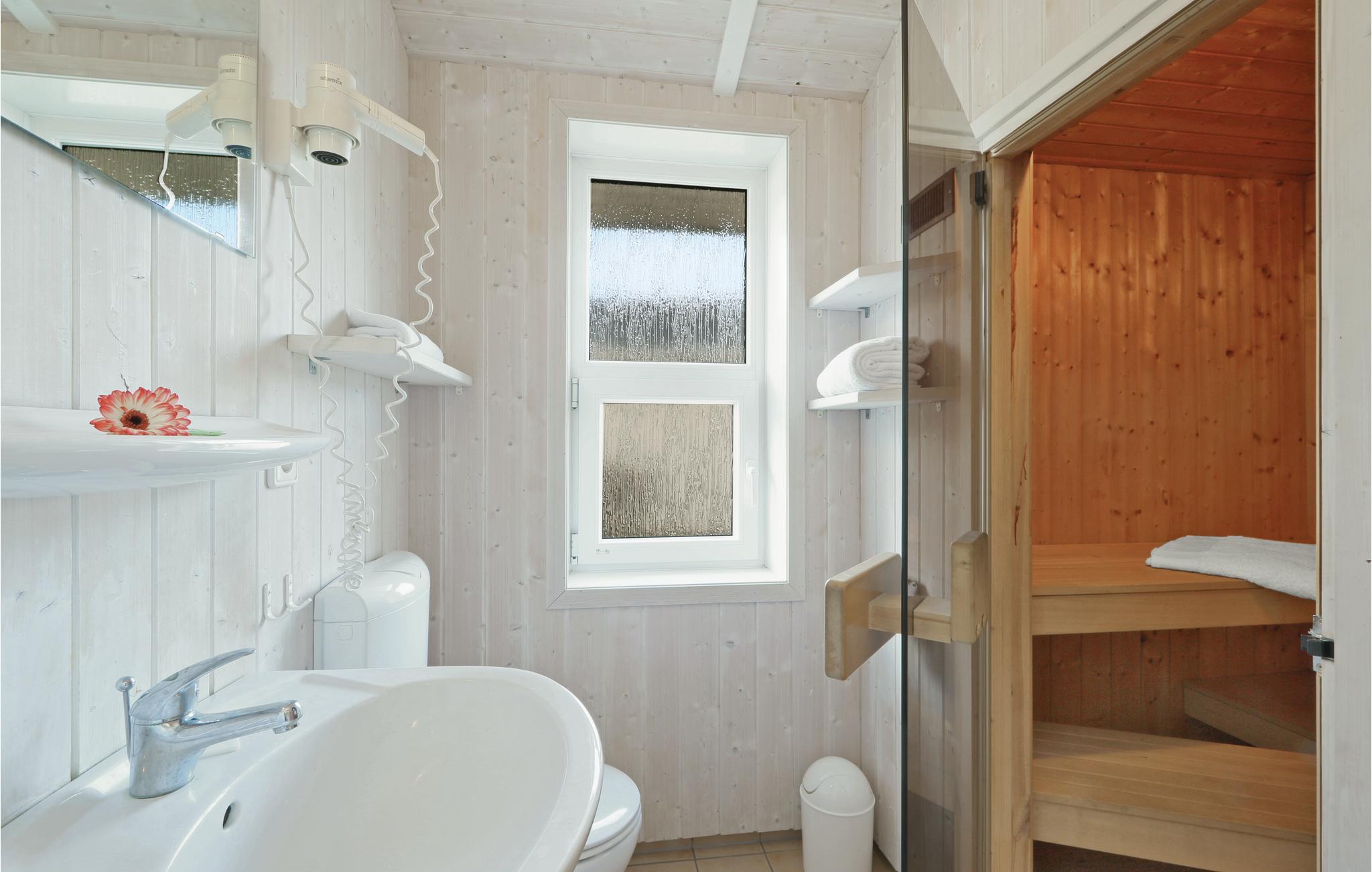 Det storslåede feriehus er perfekt for jeres familieferie, eller måske hvis I holder ferie sammen med vennepar. Der er god plads til fire voksne og to børn. Der er to separate soveværelser henholdsvis en dobbeltseng samt to enkeltsenge. Børnene kan hygge sig på sovesofaen i opholdsstuen. Feriehusets særlige attraktion er badeværelset med sauna. Her kan I få varmen efter jeres vandreture ude ved vandet på de lidt køligere dage.