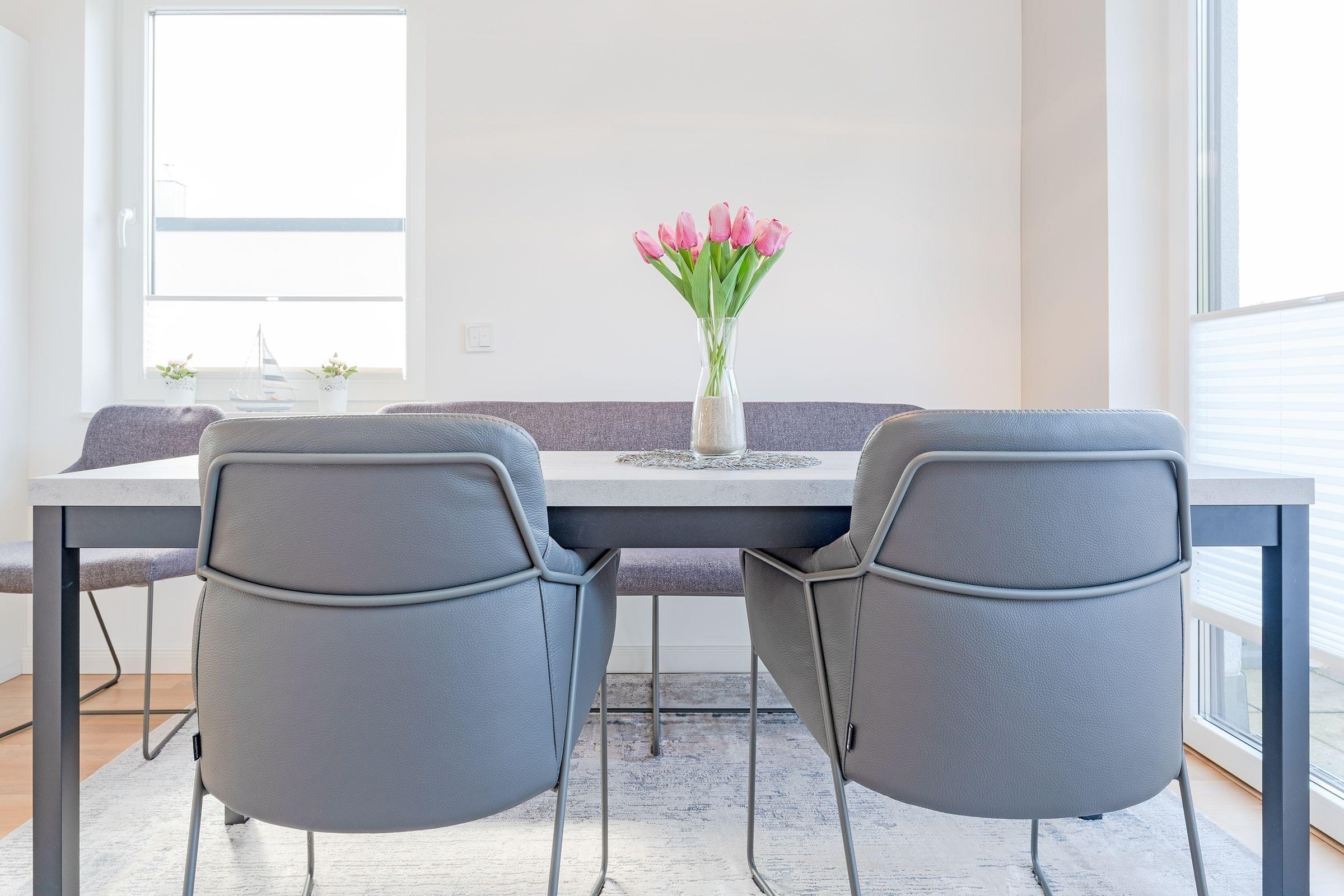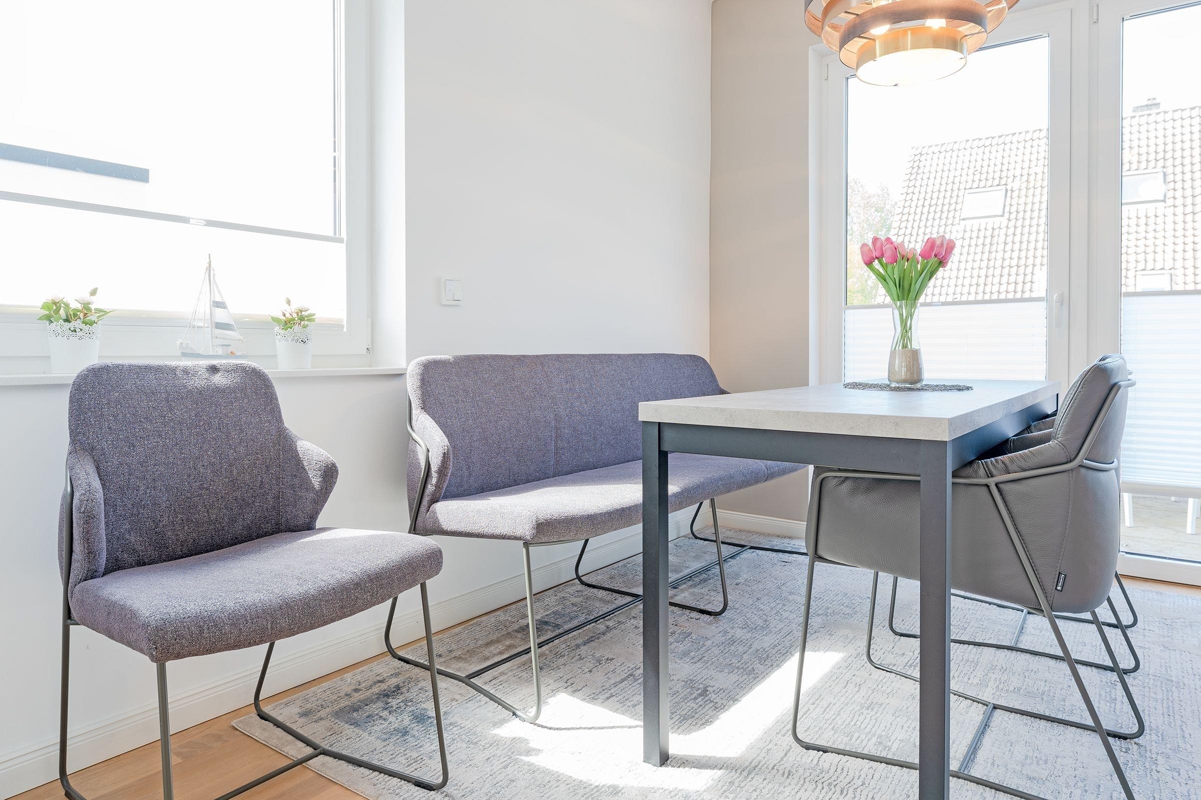 Eine perfekte Mischung: Wunderschöne Strände und eine unberührte Natur sowie eine schicke Uferpromenade zum Flanieren zeichnen den Priwall aus. Und auch die Fähre, die Sie nach Travemünde bringt, ist nicht weit von Ihrem Feriendomizil entfernt. Mit dem Fahrstuhl erreichen Sie die zauberhafte Ferienwohnung Priwalk Vacation. Der lichtdurchflutete Wohnbereich mit den bodentiefen Fenstern empfängt Sie mit einer kuscheligen Sofalandschaft und einem Smart TV mit Bluetooth Box – hier finden Sie, je nach Bedarf, herrliche Entspannung oder auch spannende Unterhaltung. Die helle, moderne Küche ist in den Wohnraum integriert und gestaltet Ihren Urlaub durch die gute Ausstattung mit Espressomaschine und Geschirrspüler wunderbar angenehm. Bereiten Sie hier Ihre Lieblingsspeisen zu und genießen Sie diese in der netten Essecke an der großen Fensterfront, wo Sie auch Zutritt auf den möblierten Balkon haben. Hier draußen an der schönen Ostseeluft finden Sie eine Menge Platz zum Erholen – sicher ein Highlight der Wohnung. Für die Nacht stehen Ihnen mehrere Schlafmöglichkeiten zur Verfügung: In einem Schlafzimmer finden Sie ein Doppelboxspringbett (180x200 cm) sowie genügend Platz, um ein Kinderreisebett aufzustellen. Dazu ein Bad en Suite. In dem anderen Schlafzimmer steht ein Doppelboxspringbett (2x 90x200 cm). Zudem lässt sich das Sofa im Wohnzimmer in ein Bett (ca. 140x270 cm) verwandeln. Beide Badezimmer sind modern eingerichtet und verfügen jeweils über bodengleiche Duschen sowie Handtuchwärmer. Ein Bad hat zudem eine Badewanne. Praktisch: Im Flur steht für Sie ein Waschtrockner bereit. Eine Fußbodenheizung in der gesamten Wohnung sowie Außenjalousien sorgen insgesamt für angenehmen Komfort.