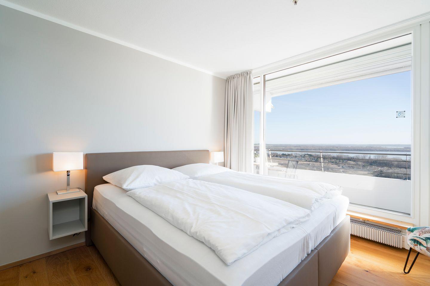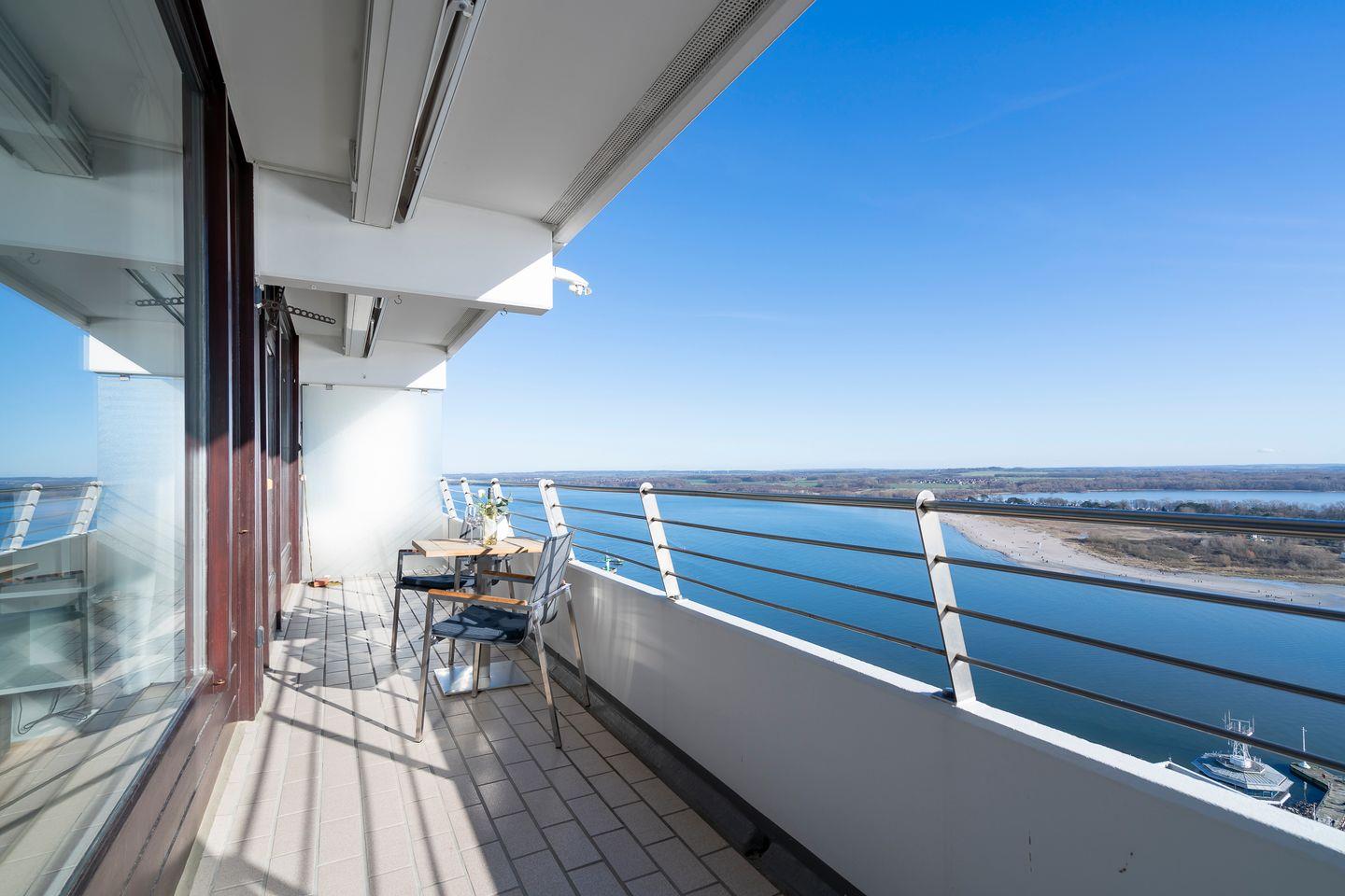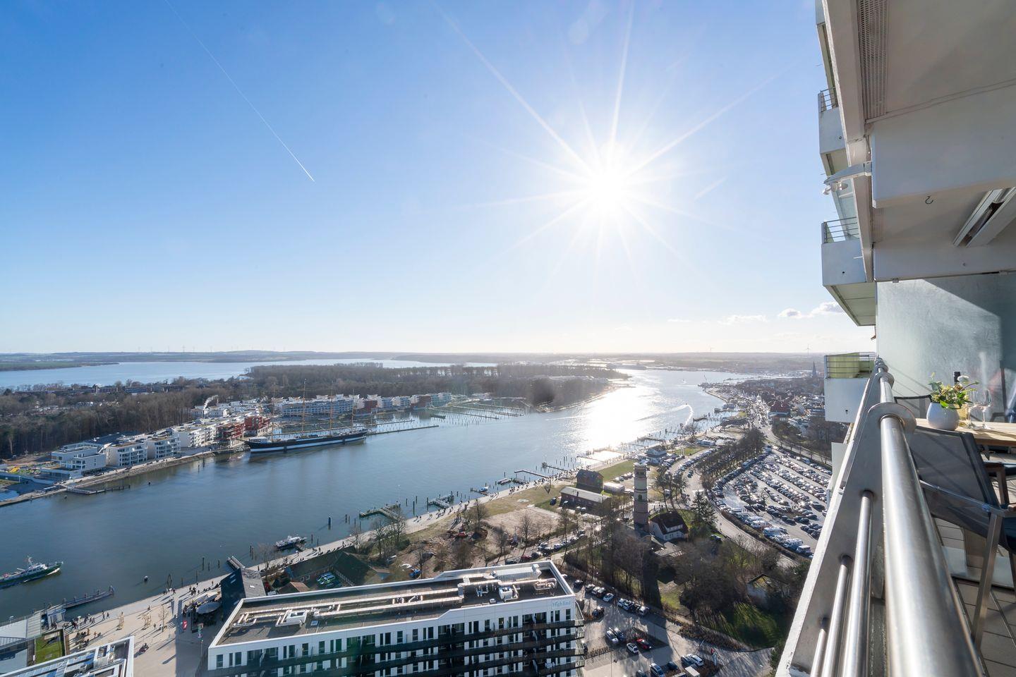 Diese Aussicht ist einfach "WOW!" und dazu wohnt ihr noch strandnah in einer 2022 erst hochwertig renovierten 2-Zimmer-Ferienwohnung in der 24. Etage des Maritim-Residenz-Appartementhauses in Travemünde.
