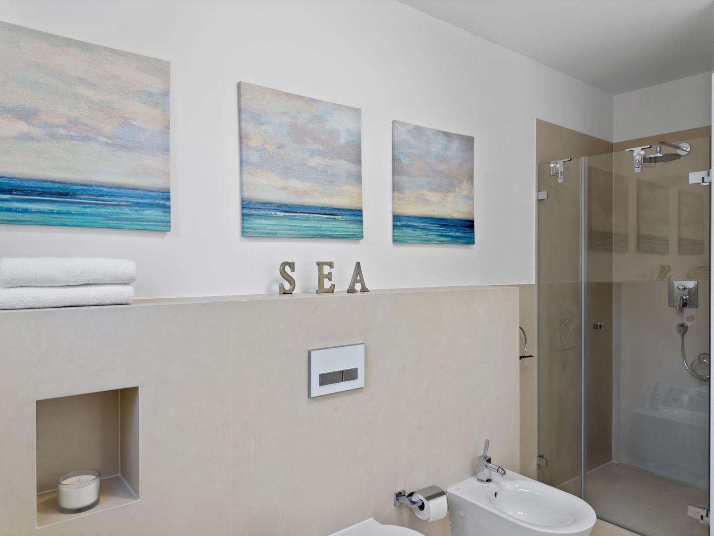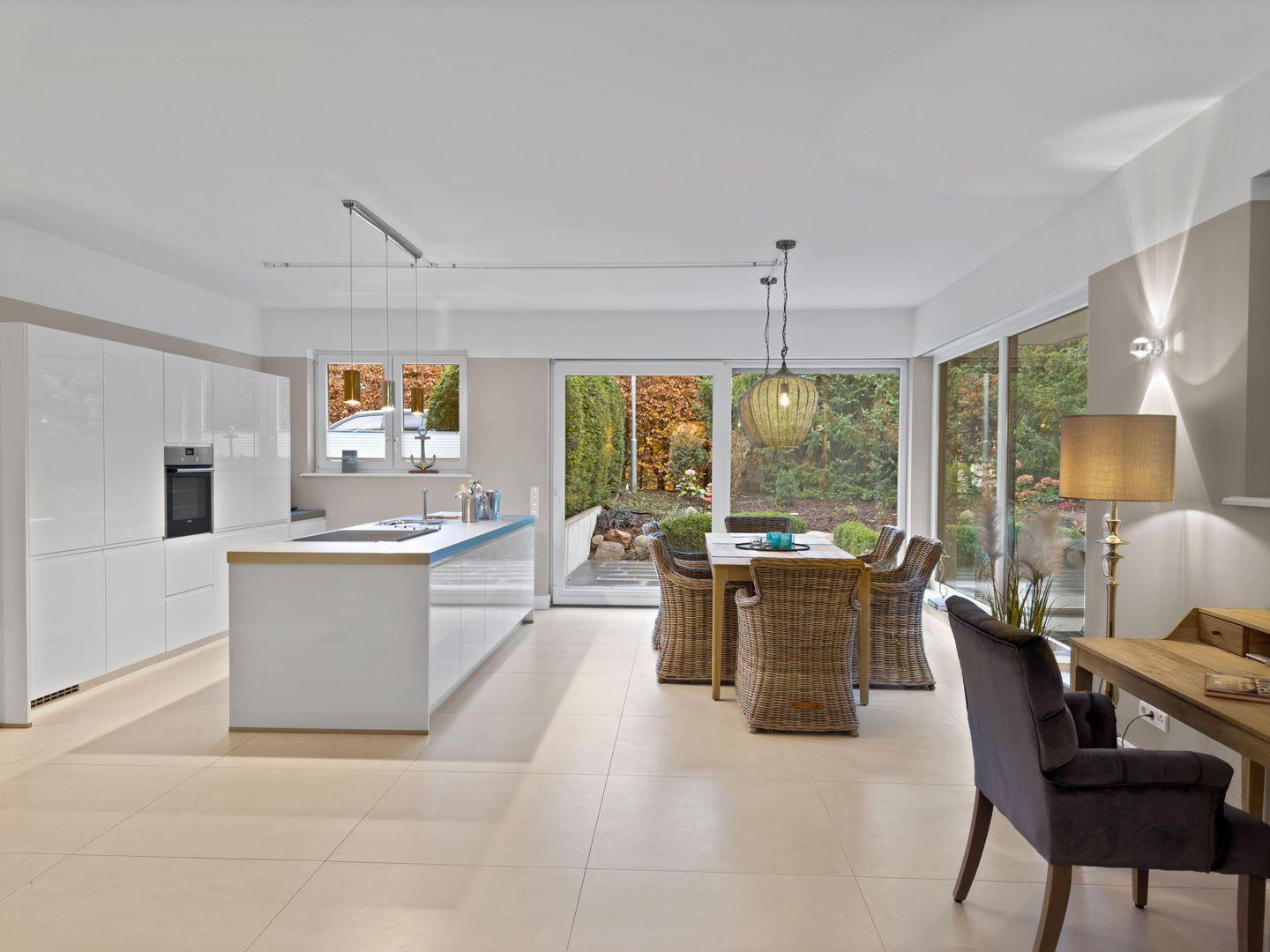 Dieses exklusive und moderne 3-Zimmer-Apartment im Erdgeschoss bietet auf ca. 100 m² großzügigen Wohnkomfort und liegt ideal am Godewindpark, nur wenige Gehminuten vom Strand entfernt. Die helle Wohnung verfügt über ein Vollbad mit Dusche und Badewanne, zwei Schlafzimmer mit Boxspringebetten. Der offene Wohnbereich mit hochwertiger Einbauküche und Kochinsel lädt zum gemeinsamen Kochen und Verweilen ein, während die möblierte Terrasse perfekt zum Entspannen im Freien ist. WLAN, TV, Waschmaschine und ein PKW-Stellplatz auf dem Grundstück sorgen für zusätzlichen Komfort.