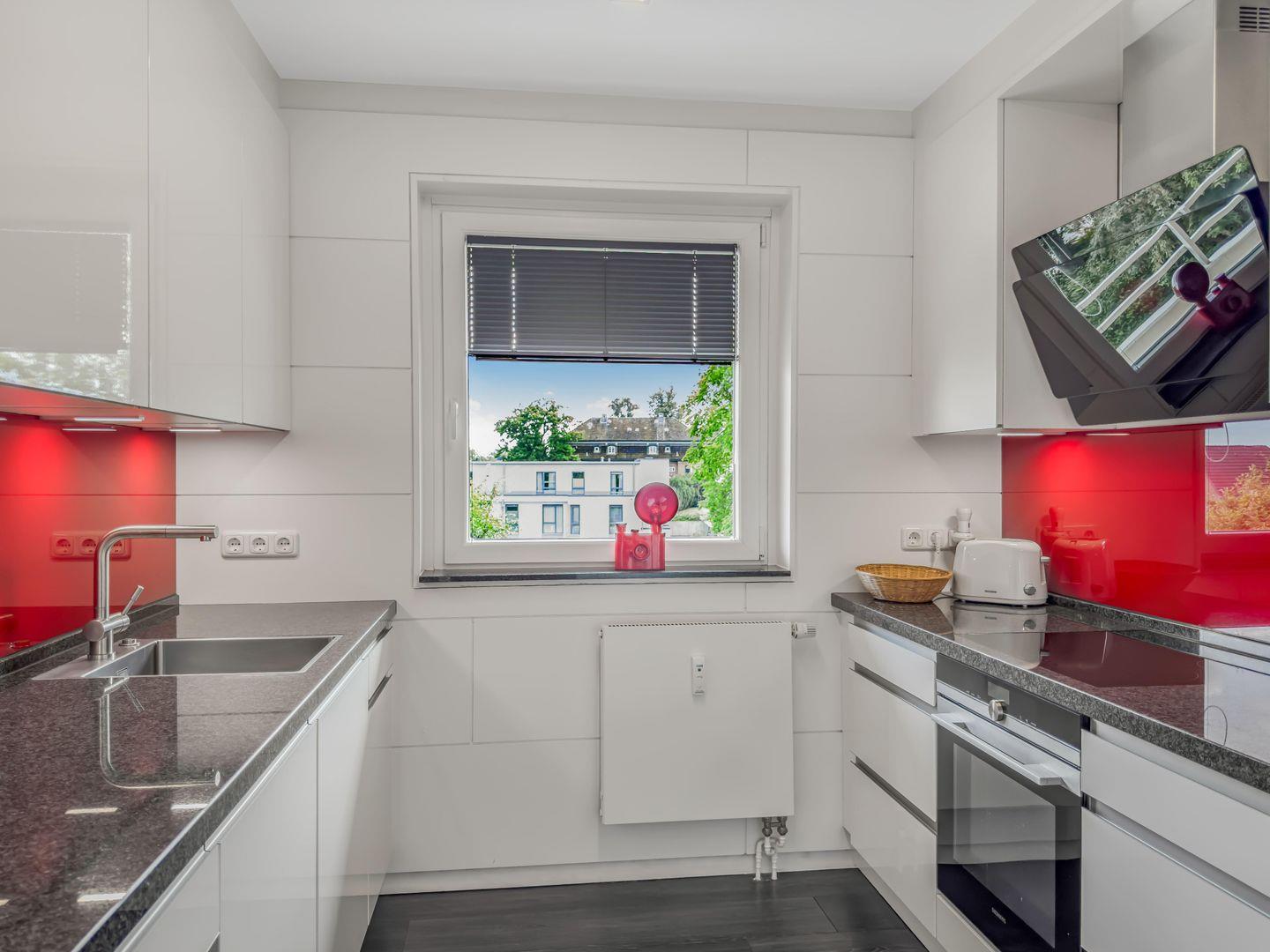 Dieses moderne 3-Zimmer-Apartment im 1. Obergeschoss bietet auf ca. 87 m² viel Platz für einen komfortablen Aufenthalt. Mit zwei Schlafzimmern – eines mit Doppelbett und eines mit zwei Einzelbetten – sowie einer gut ausgestatteten Einbauküche inklusive Backofen, Ceranfeld, Geschirrspüler und Mikrowelle ist es ideal für Familien oder Freunde. Das Wohnzimmer mit TV und Musikanlage lädt zum Entspannen ein, und der Eckbalkon bietet einen schönen Blick auf das Meer. Der Strand liegt direkt auf der anderen Straßenseite, und ein Tiefgaragenstellplatz sowie eine Waschmaschine im Keller sorgen für zusätzlichen Komfort.