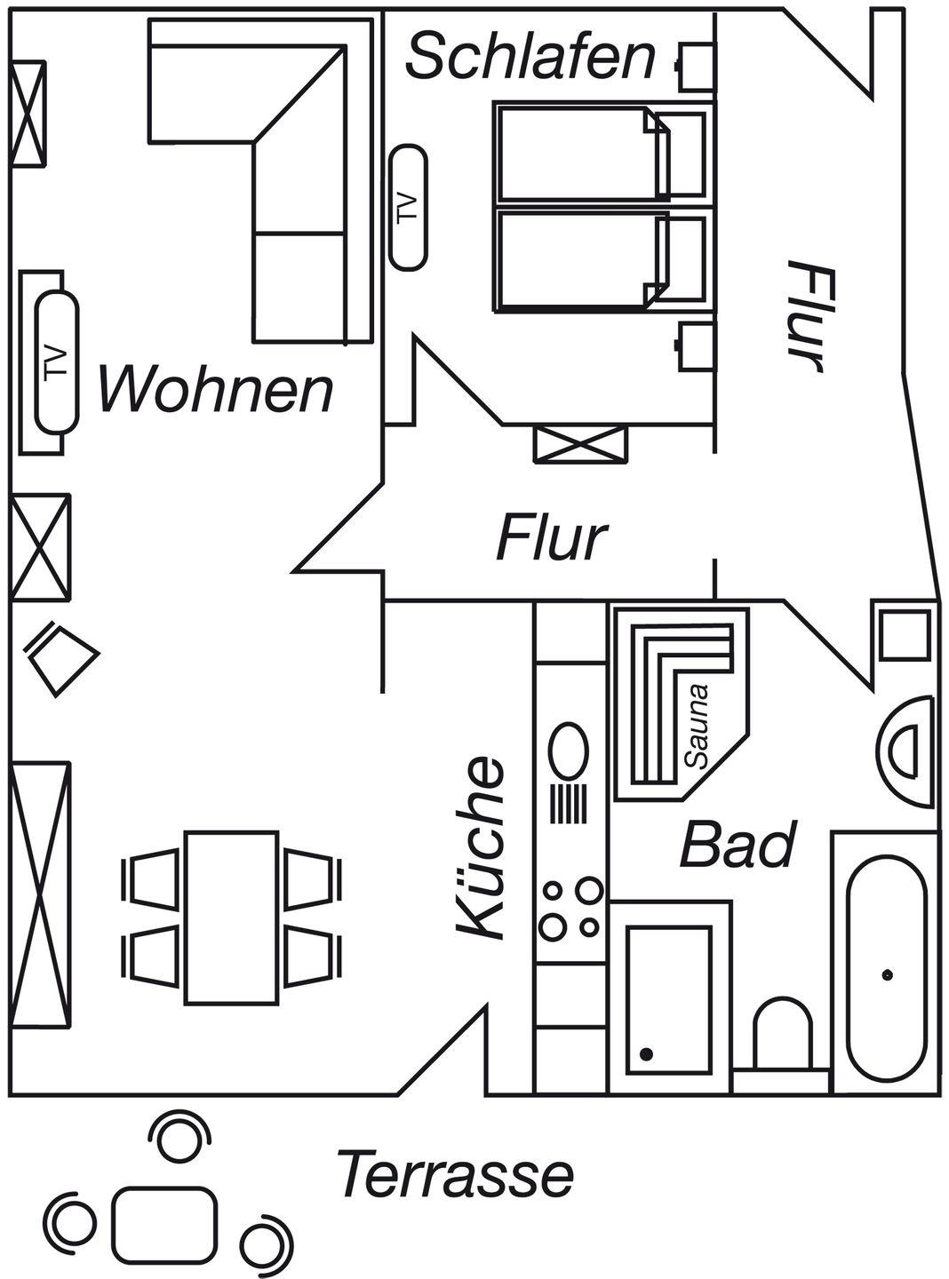 Dieses modern eingerichtete 2-Zimmer-Apartment im Erdgeschoss bietet auf ca. 67 m² alles für einen komfortablen Aufenthalt. Die ruhige Lage sorgt für Erholung, und die nahe Busanbindung ermöglicht bequeme Ausflüge in die Umgebung. Entspannen Sie im gemütlichen Wohnzimmer oder auf der möblierten Terrasse. Das Apartment verfügt über ein Schlafzimmer mit Doppelbett und TV sowie eine hochwertige Einbauküche mit separatem Essbereich. Das Duschbad mit walk-in Regenwaldusche und Infrarotkabine bietet zusätzlichen Komfort. Ein abschließbarer Fahrradunterstand und ein PKW-Außenstellplatz stehen Ihnen auf dem Grundstück zur Verfügung.