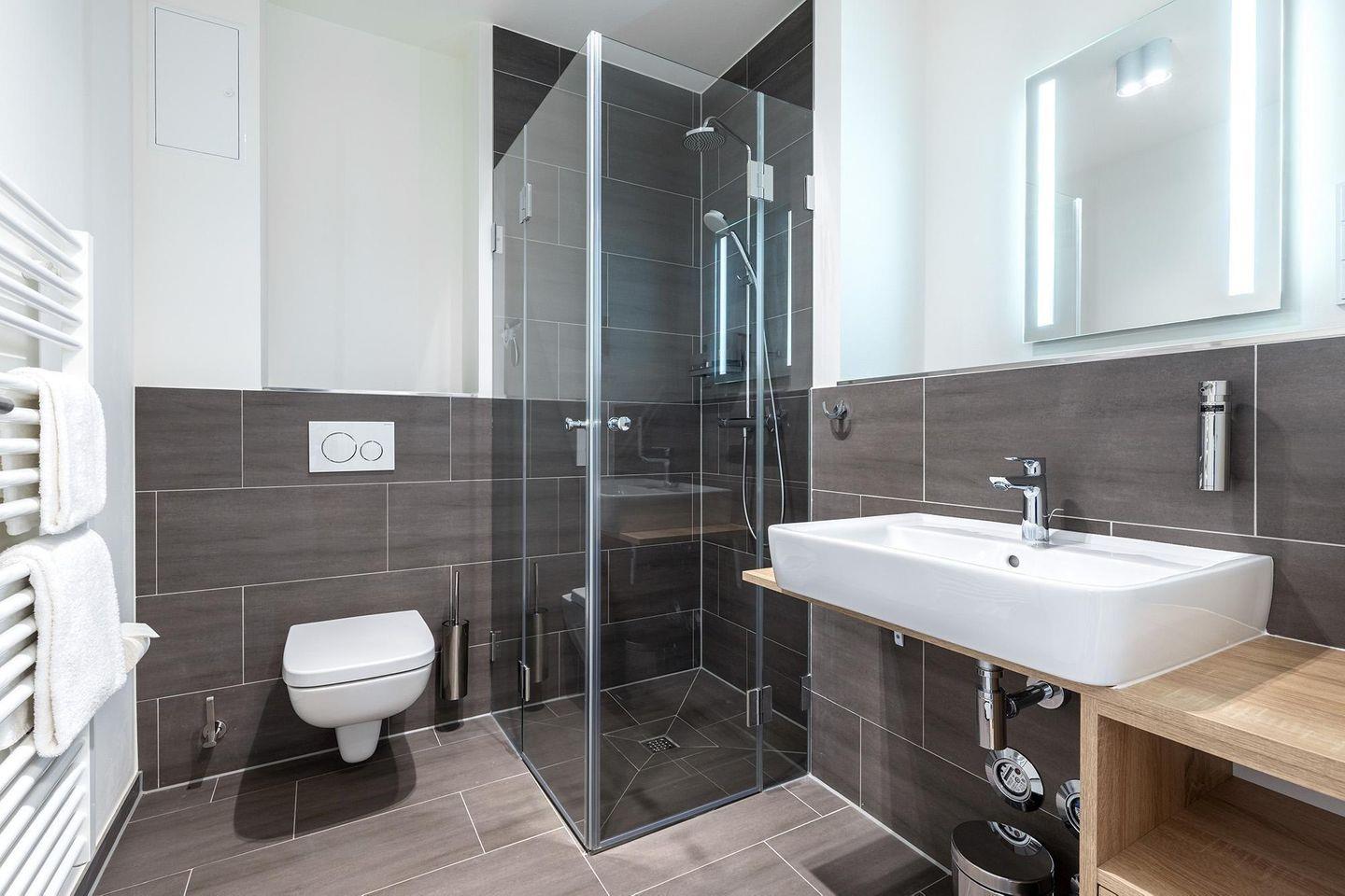 Ein besonderes Highlight ist die großzügige Wellnesslandschaft: Finnische Sauna, Biosauna, Dampfbad, Fußbäder, Erlebnisduschen, Eisbrunnen sowie Ruhezonen mit Kamin laden zum Entspannen ein. Während der Öffnungszeiten steht Ihnen der Spa-Bereich kostenfrei zur Verfügung. Wer keinen Bademantel dabei hat, kann sich diesen ebenso wie Saunatücher bequem gegen eine geringe Gebühr leihen. Ein Aufzug verbindet den Wellnessbereich mit allen Etagen, sodass Sie bequem zu Ihrer Wohnung gelangen können.