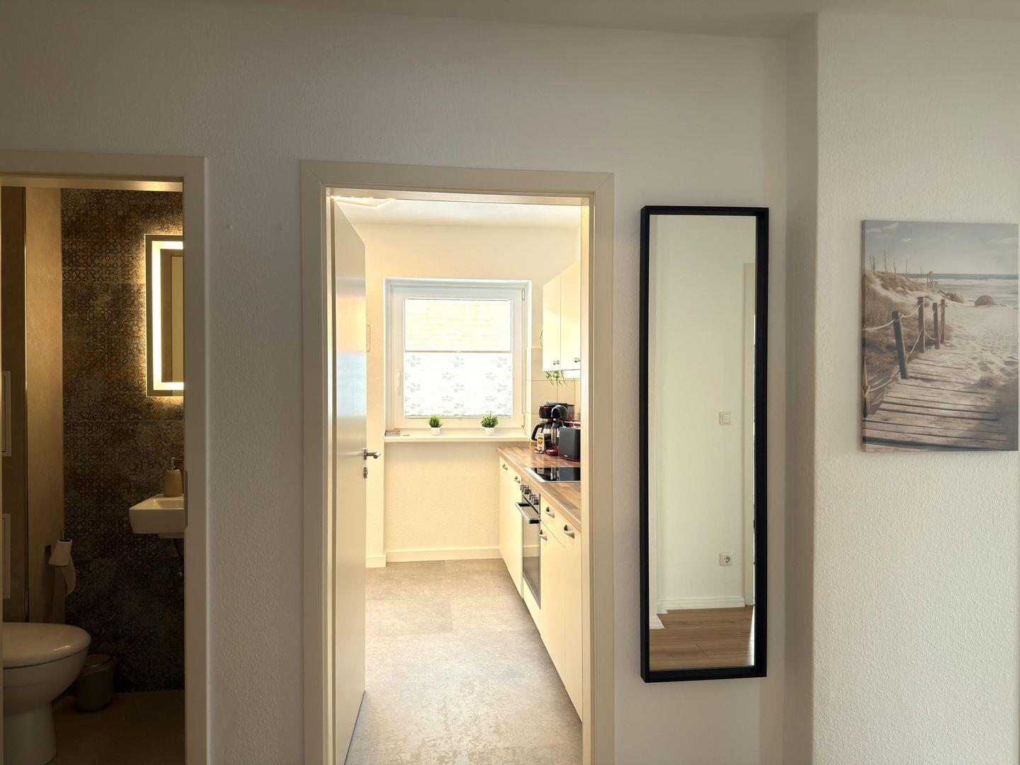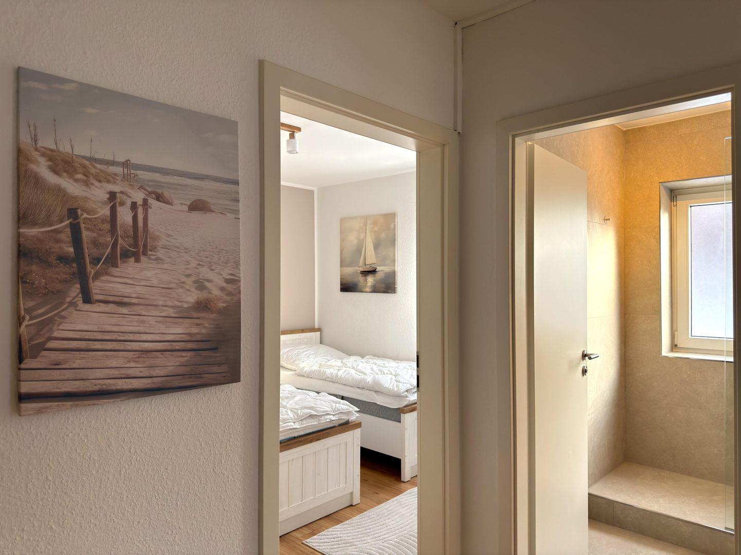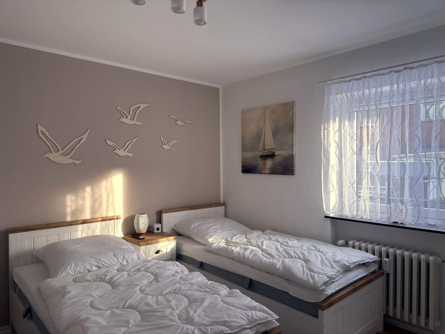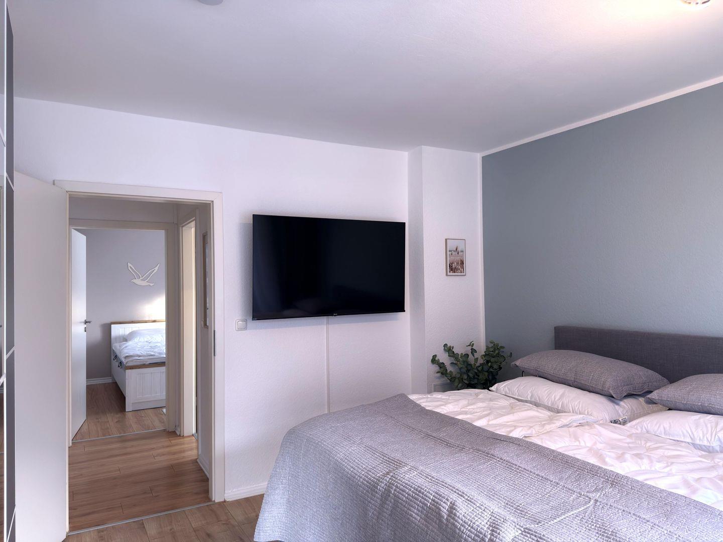 Dieses moderne 3-Zimmer-Apartment im 1. Obergeschoss bietet auf ca. 70 m² viel Platz für einen komfortablen Aufenthalt. Die Wohnung verfügt über zwei Schlafzimmer, eines mit Doppelbett (1,80 m) und TV sowie ein weiteres Schlafzimmer mit zwei Einzelbetten und TV. Das moderne Duschbad ergänzt die praktische Raumaufteilung. Die gut ausgestattete Einbauküche mit Induktionskochfeld, Backofen, Geschirrspüler und Mikrowelle sowie ein separater Essplatz laden zum gemeinsamen Kochen und Verweilen ein. Im Wohnzimmer sorgen Sofa, TV und WLAN für entspannte Stunden. Vom Balkon genießen Sie einen schönen Blick auf die Trave. Dank der zentralen Lage mit Busanbindung direkt vor der Tür sowie Einkaufsmöglichkeiten, Geschäften und Restaurants um die Ecke ist die Wohnung ein idealer Ausgangspunkt. Ein PKW-Stellplatz direkt vor dem Haus steht ebenfalls zur Verfügung.