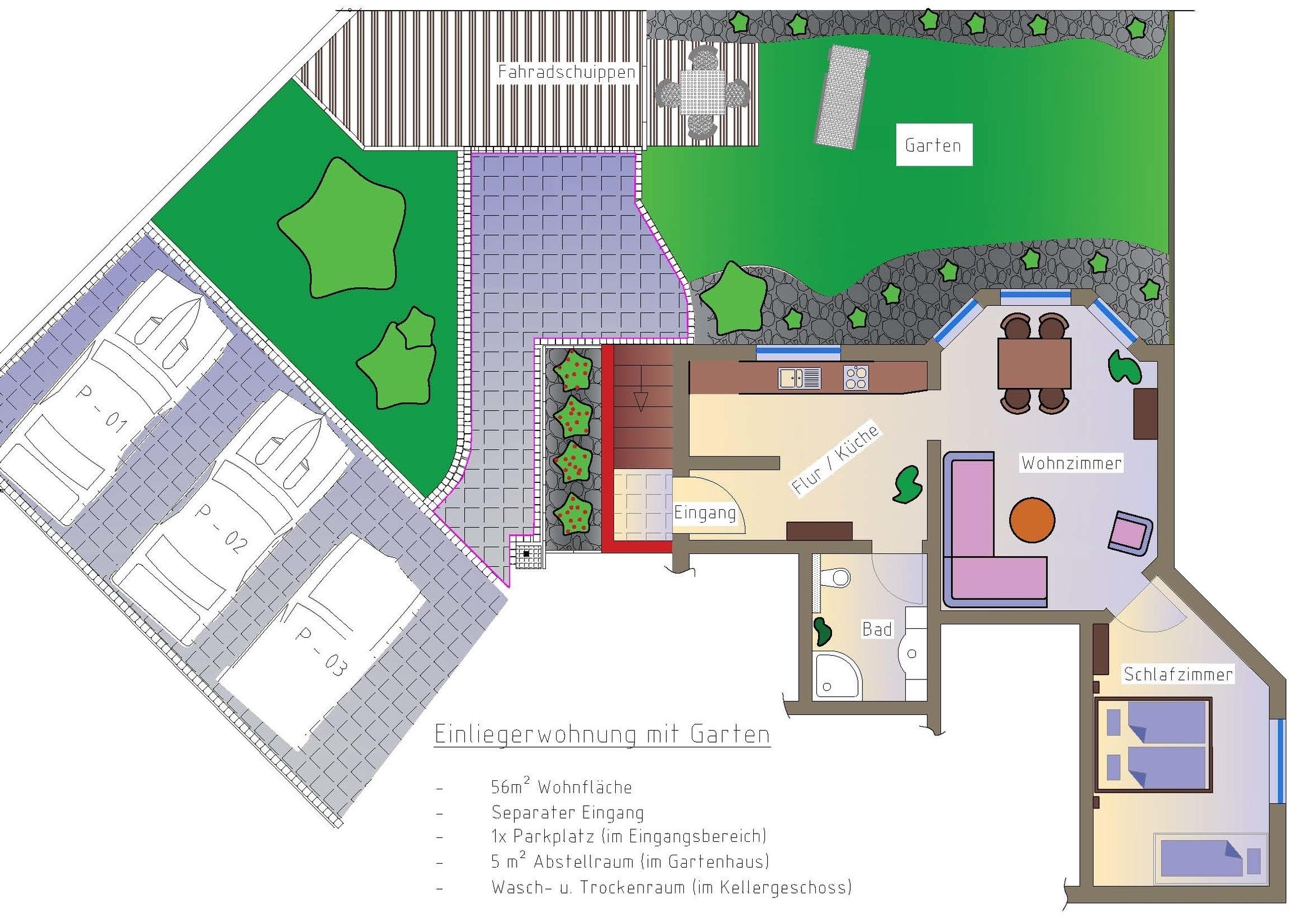 Zur Ferienwohnung gehört ein eigener Stellplatz für das Auto.