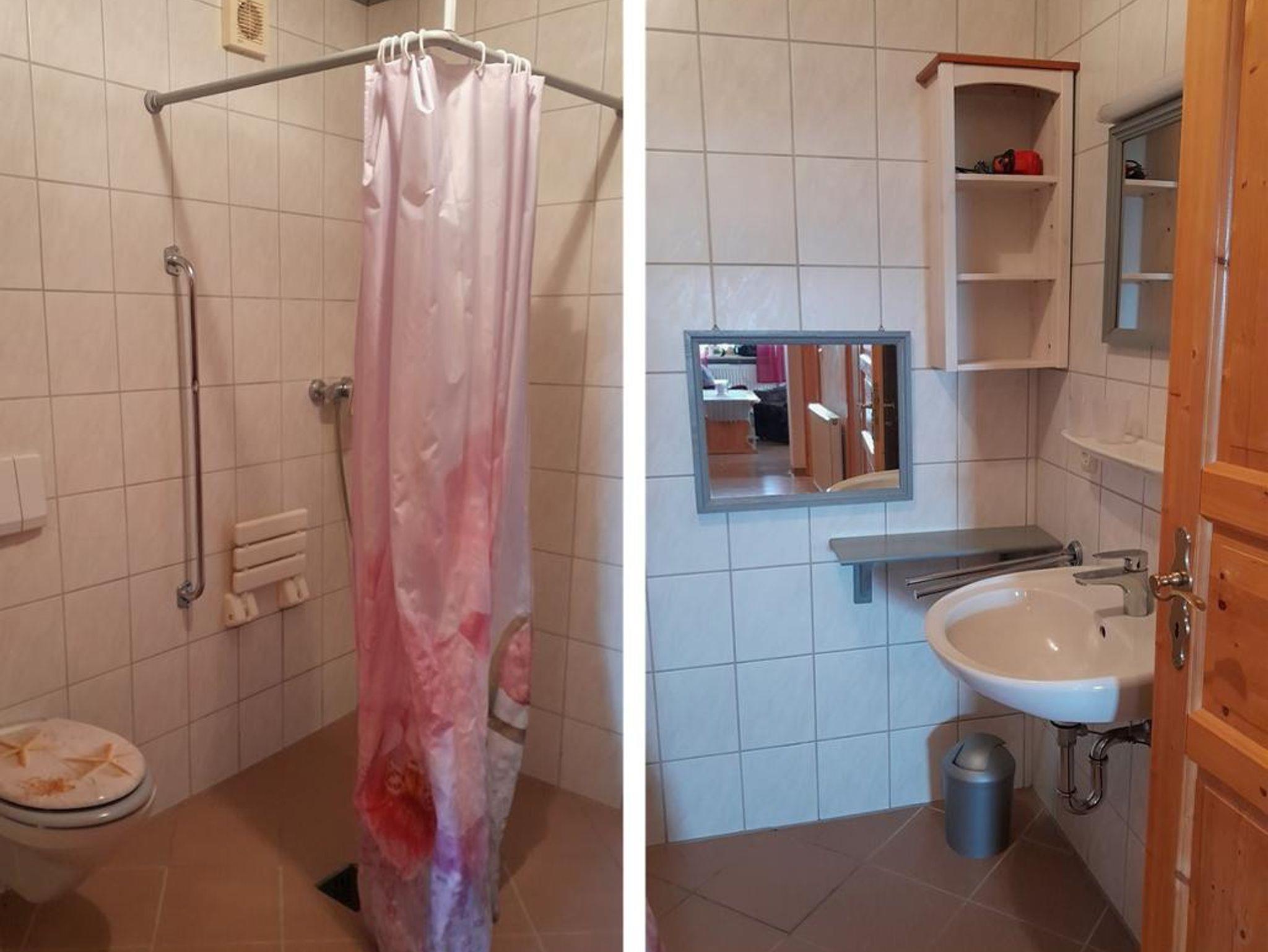 In der Wohnung befinden sich zwei Schlafräume, wovon eines als Elternschlafzimmer mit einem Doppelbett und eines als Kinderzimmer mit Etagen- und Einzelbett, eingerichtet sind. Das Bad ist mit rollstuhlgerechter Dusche und WC ausgestattet. Direkt vor den Wohnungen können Autos geparkt werden. Die Wohnungen werden über eine breite, überdachte Terrasse erreicht. Diese lädt ein zum Frühstücken im Freien, zum nachmittäglichen Kaffeetrinken oder für gesellige Runden am Abend.