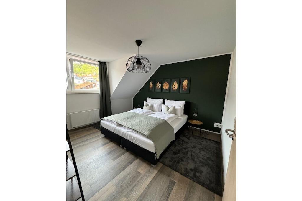 Welcome to MARKINA & this luxurious penthouse apartment in the heart of Treffurt at the foot of the "Normanstein Castle" that offers you everything for a stay in Treffurt: # Two-sided terrace with seating/dining area and awning # Elevator to the apartment # super central within walking distance to the city center and the Werra # free parking in front of the house # E-charging station # large Smart TV with Netflix # 3 bedrooms with box spring beds # bathroom and guest toilet # fully equipped kitchen # locked bicycle room