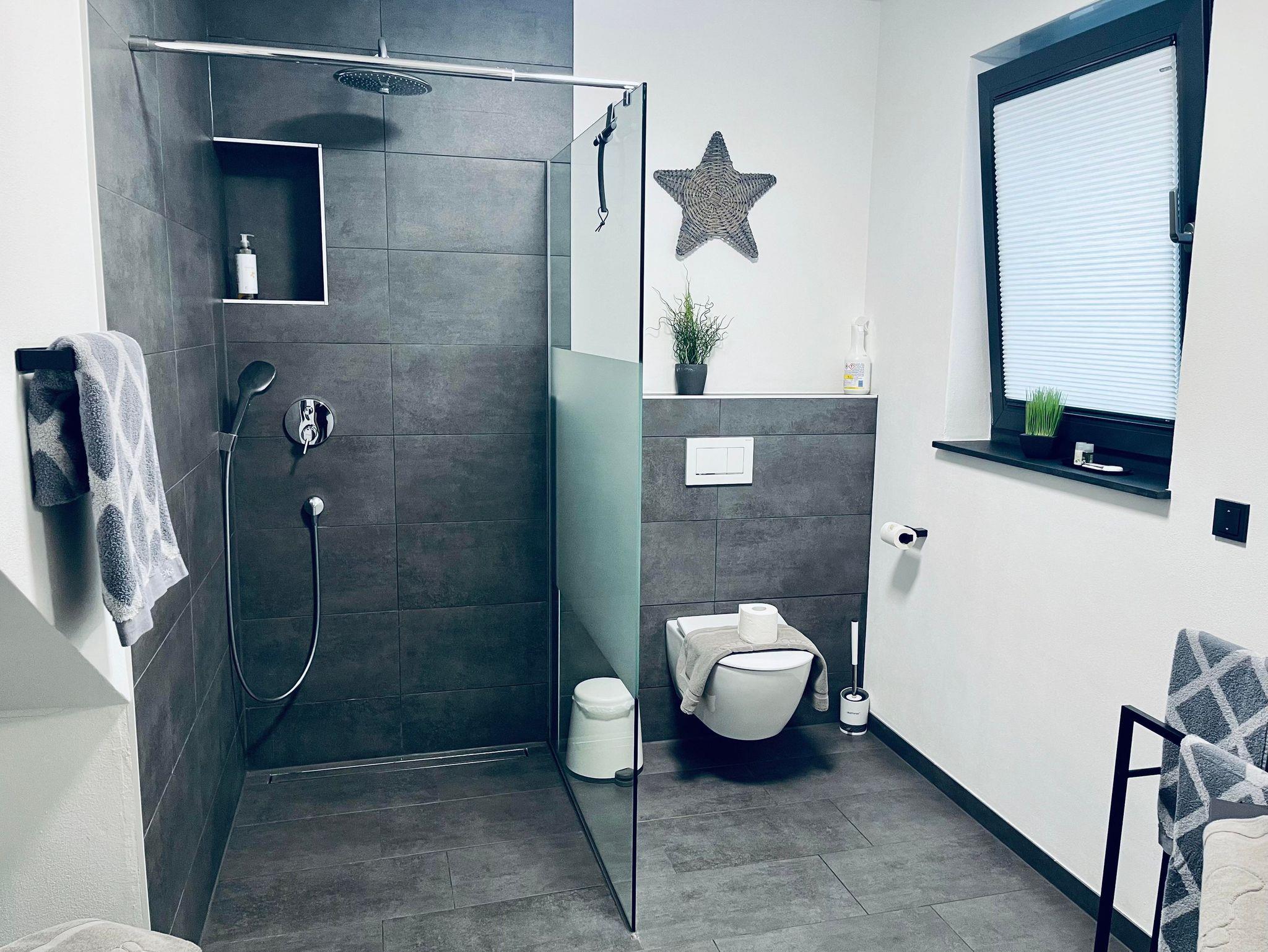 Freuen Sie sich auf einen Urlaub in unserer modernen Ferienwohnung. Sie wohnen im Neubau, sehr gut ausgestattet und vom DTV mit 5 Sternen ausgezeichnet. Die Unterkunft bietet Ihnen Barrierefreiheit im Erdgeschoss vom Privatparkplatz vor der eigenen Eingangstür, über die ebenerdige Regen-Dusche bis zur eigenen Terrasse und ist daher ideal geeignet für Familien mit Baby, für Kinder, aber auch für Senioren oder für Menschen mit Gehbehinderung und vor allem für Hunde.
