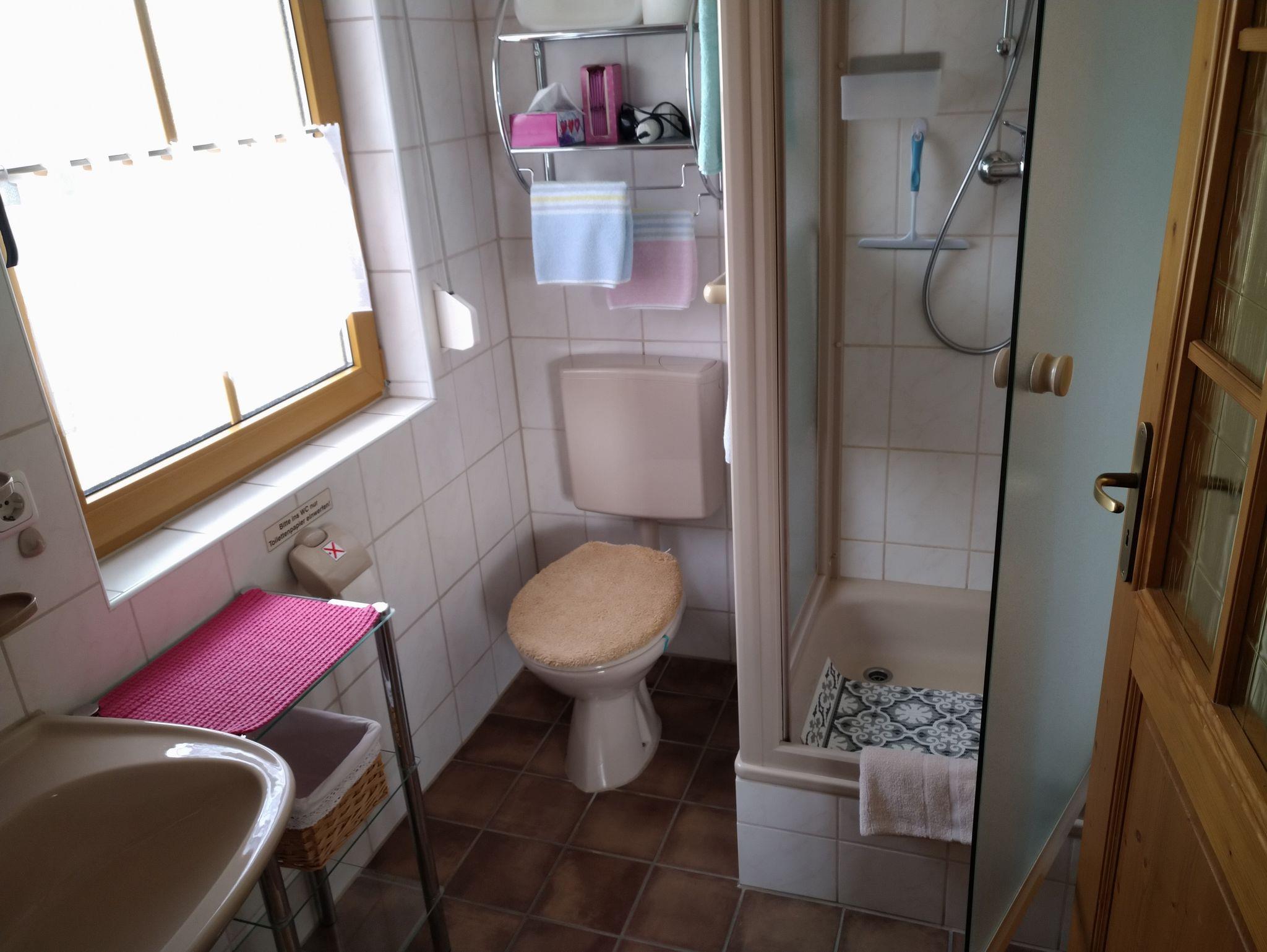 WLAN ist in allen Zimmern verfügbar. An allen Fenstern befinden sich Rollos und Fliegengitter. Rauchen ist im gesamten Haus nicht erlaubt. Für Wärme und Warmwasser sorgt eine neue Gas-Etagenheizung. - Wanderern bieten wir nach Absprache einen Gepäckservice an. Fahrräder können im abschließbaren Häuschen sicher verwahrt werden. E-Bikes können hier auch geladen werden. Parkmöglichkeit besteht entweder vor dem Haus - eine ruhige Seitenstraße - oder nach Absprache bei uns in der Garageneinfahrt.
