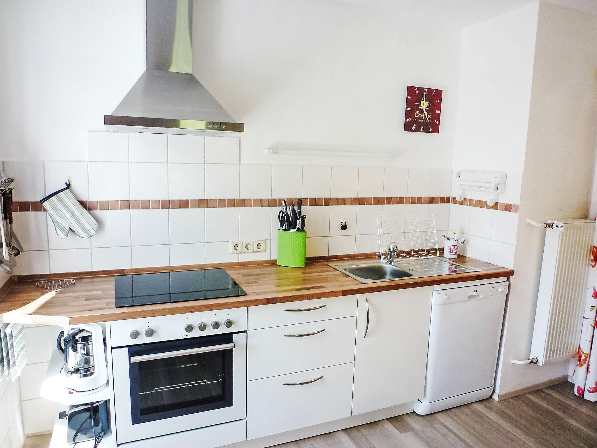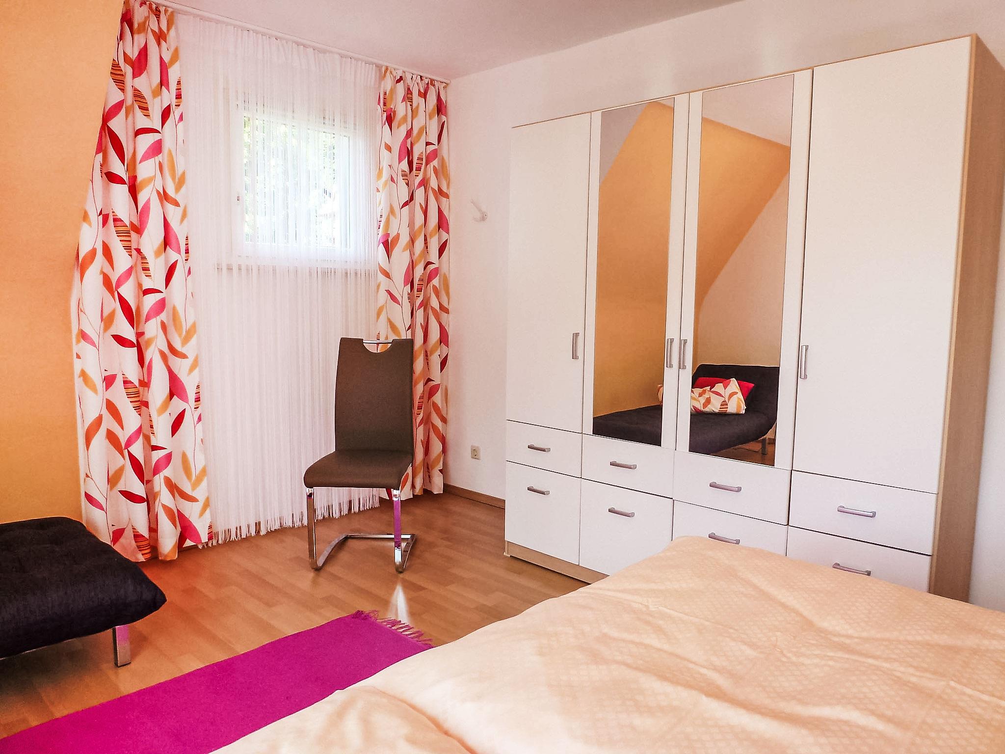 2-room apartment 65 m2, on the upper floor. Bright, partly with sloping ceilings, very cosy furnishings: large living/sleeping room with 1 double sofabed (140 cm, length 220 cm), cable TV (flat screen), radio. Exit to the terrace. 1 double bedroom with 1 double bed (2 x 90 cm, length 200 cm). Large kitchen-/living room (oven, dishwasher, 4 ceramic glass hob hotplates, microwave, electric coffee machine) with dining table. Exit to the terrace. Bath/WC. Beautiful view of the valley and the town. Facilities: hair dryer. Internet (WiFi, extra). Please note: non-smokers only. Maximum 1 pet/ dog allowed. Only dogs are allowed as pets. The terrace is a spacious roof terrace.