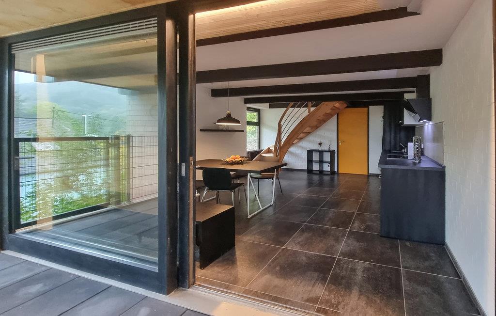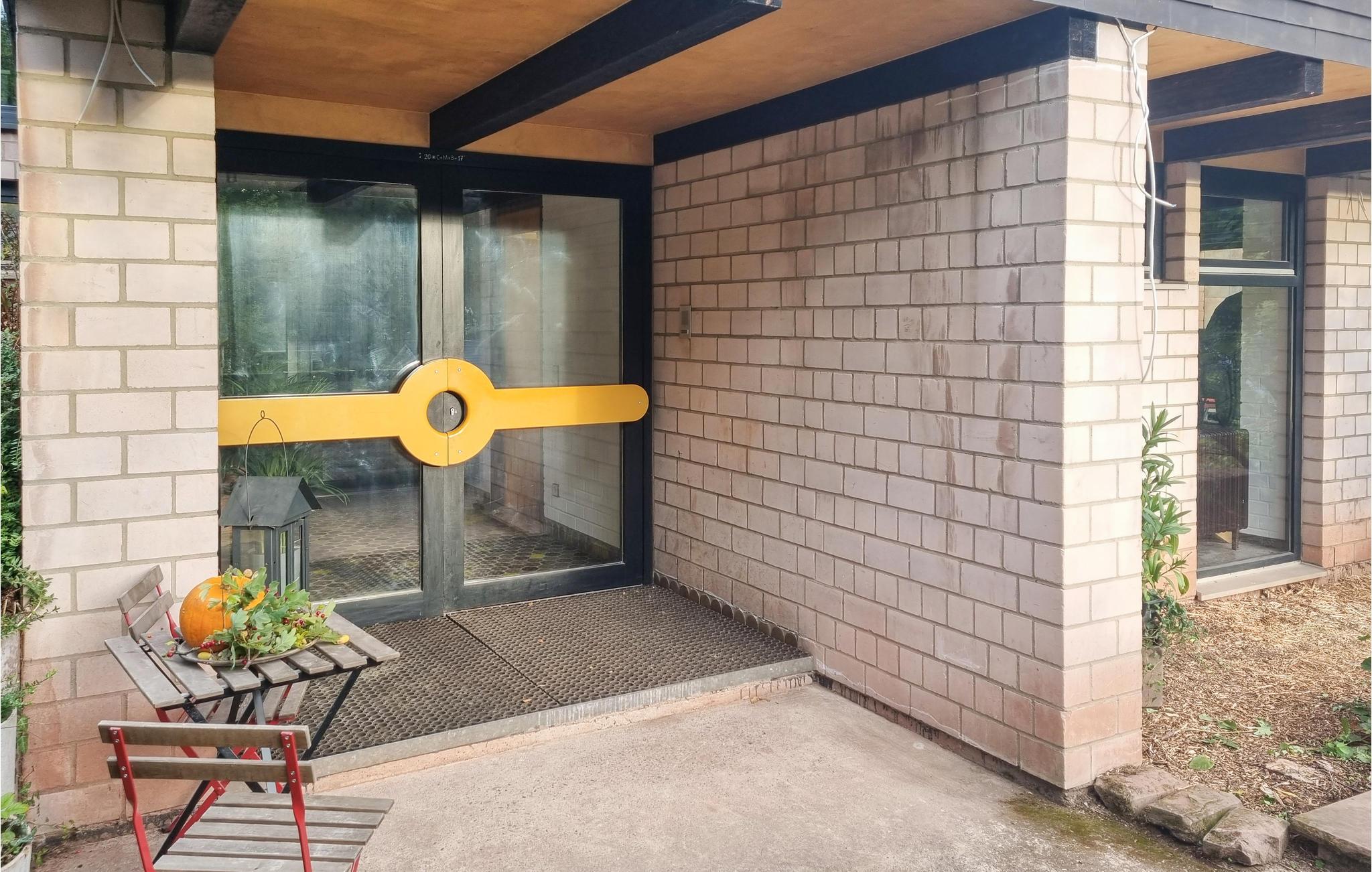 På en grøn beliggenhed uden for Trier byder dette skønne feriehus med spændende arkitektur fra 1970'erne jer velkommen.