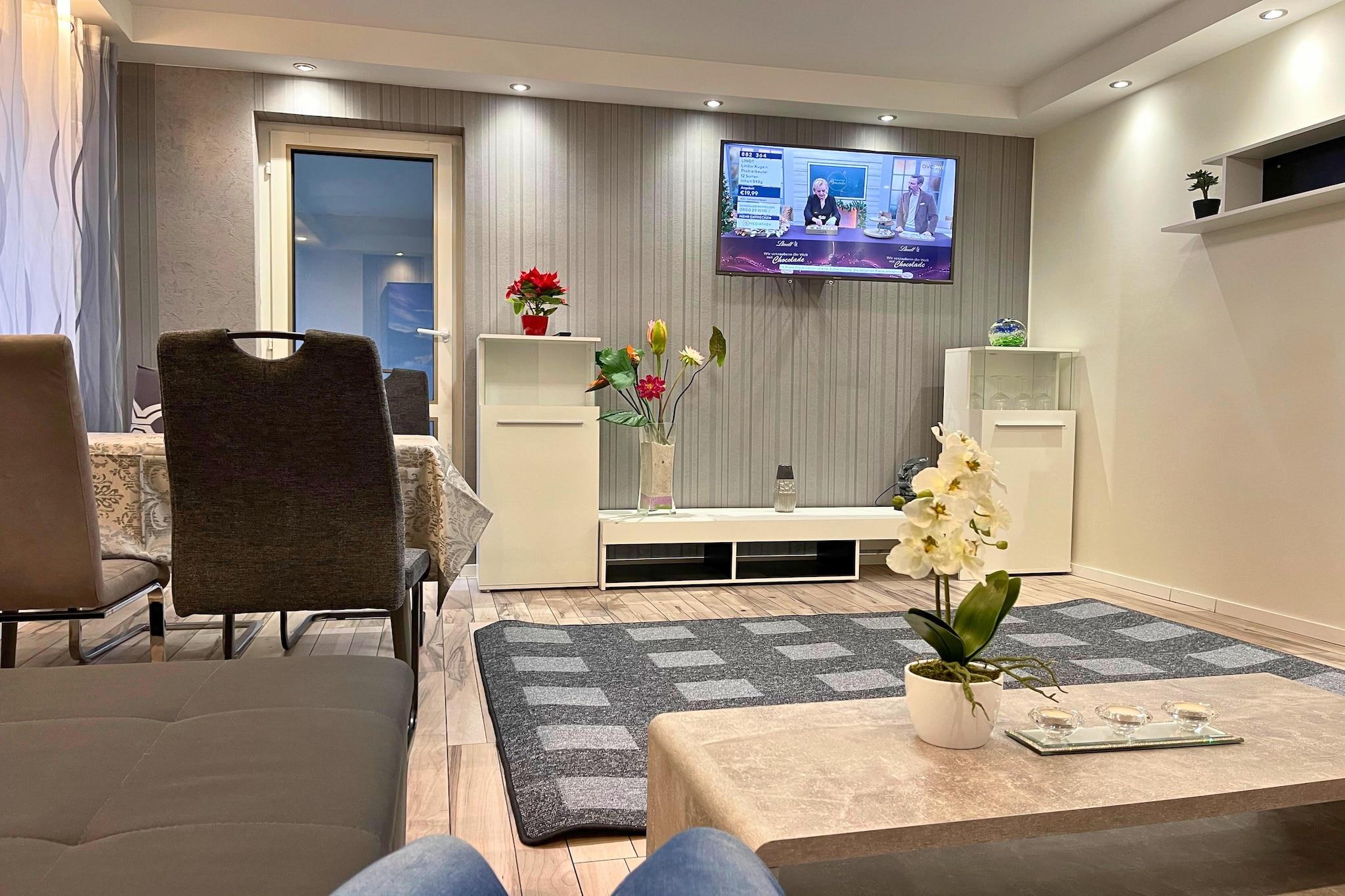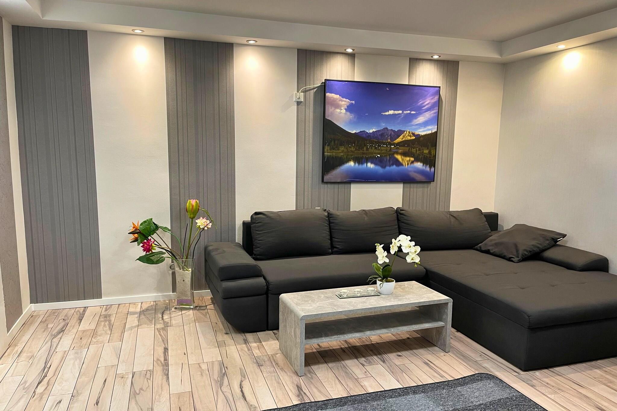 Denne veludstyrede lejlighed ligger i Triers historiske centrum og er et perfekt valg for familier eller små grupper, der søger både komfort og bekvemmelighed. Med sin rummelige planløsning tilbyder lejligheden en indbydende stue med en sovesofa til én person, tv, spisebord og siddeområde - ideel til afslapning efter en dag med sightseeing. Det fuldt udstyrede køkken har komfur, ovn, mikrobølgeovn, opvaskemaskine, kaffemaskine og køleskab, hvilket gør det nemt og behageligt at tilberede hjemmelavede måltider. Lejligheden har to soveværelser, hver med to enkeltsenge, der tilbyder fleksible sovepladser til op til fire gæster. Badeværelset har et moderne brusebad, toilet, håndvask og en hårtørrer for ekstra bekvemmelighed. Gæsterne kan nyde en kop kaffe eller slappe af i den friske luft på den private balkon. Familier, der rejser med børn, vil sætte pris på den tilgængelige børneseng og højstol, mens praktiske faciliteter som en betalt vaskemaskine og tørretumbler, parkering og elevatoradgang sikrer et stressfrit ophold. Træd udenfor og udforsk de mange vidundere i Trier - den ældste by i Tyskland. Besøg den berømte Porta Nigra, en velbevaret romersk port, eller udforsk de gamle romerske bade og den imponerende Trierer Dom. Det travle Hauptmarkt byder på charmerende butikker og caféer, mens Mosel-floden indbyder til naturskønne vandreture og bådture. Med sin blanding af rig historie, levende kultur og naturlig skønhed er Trier den perfekte baggrund for dit ophold i denne komfortable lejlighed.