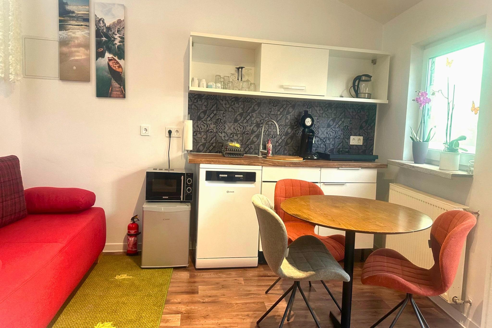 Flygt til Pellingens rolige omgivelser og slap af i denne hyggelige og omhyggeligt udstyrede lejlighed, ideel til op til 3 gæster. Uanset om I er et par, der søger et roligt tilflugtssted, eller en lille familie på et eventyr på landet, tilbyder denne lejlighed den perfekte base med en blanding af moderne komfort og rustik charme. Lejligheden har en lys stue med en komfortabel sovesofa til én person, et tv og en spiseplads - perfekt til at nyde måltider eller slappe af efter en dag med udforskning. Det åbne køkken er fuldt udstyret med kaffemaskine, elkedel, mikrobølgeovn, opvaskemaskine, køleskab og komfur, hvilket gør det nemt at tilberede alt fra morgenmad til aftensmad. Det separate soveværelse tilbyder en dobbeltseng eller to enkeltsenge, der passer til dine behov, mens det moderne badeværelse har bruser, toilet, håndvask og hårtørrer. Yderligere faciliteter inkluderer aircondition, en møbleret terrasse til at nyde den fredelige natur samt adgang til vaskemaskine og tørretumbler (mod betaling). Familier vil sætte pris på den inkluderede børneseng, mens strygefaciliteter og privat parkering giver ekstra bekvemmelighed. Denne lejlighed ligger i nærheden af de frodige skove og vinmarker i naturparken Saar-Hunsrück og kun en kort køretur fra Trier, Tysklands ældste by, og tilbyder komfort og en indgang til kulturelle og naturlige skatte.