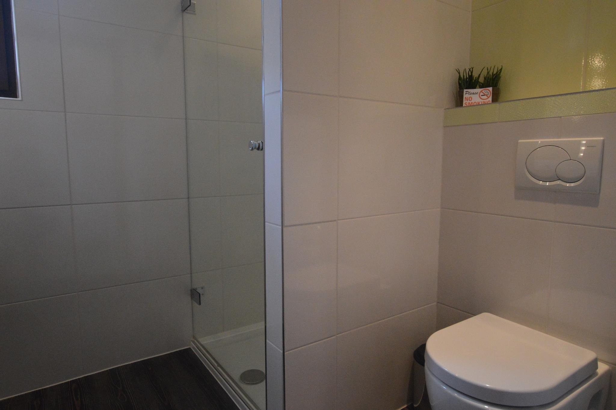 Køkken(spisebord, kogeplade, elkedel, kaffemaskine, mikrobølgeovn, køle-fryseskab), Stue/soveværelse(dobbeltseng, Fjernsyn, sofahjørne, stereoanlæg), badeværelse(bruser, håndvask, toilet), terrasse, have