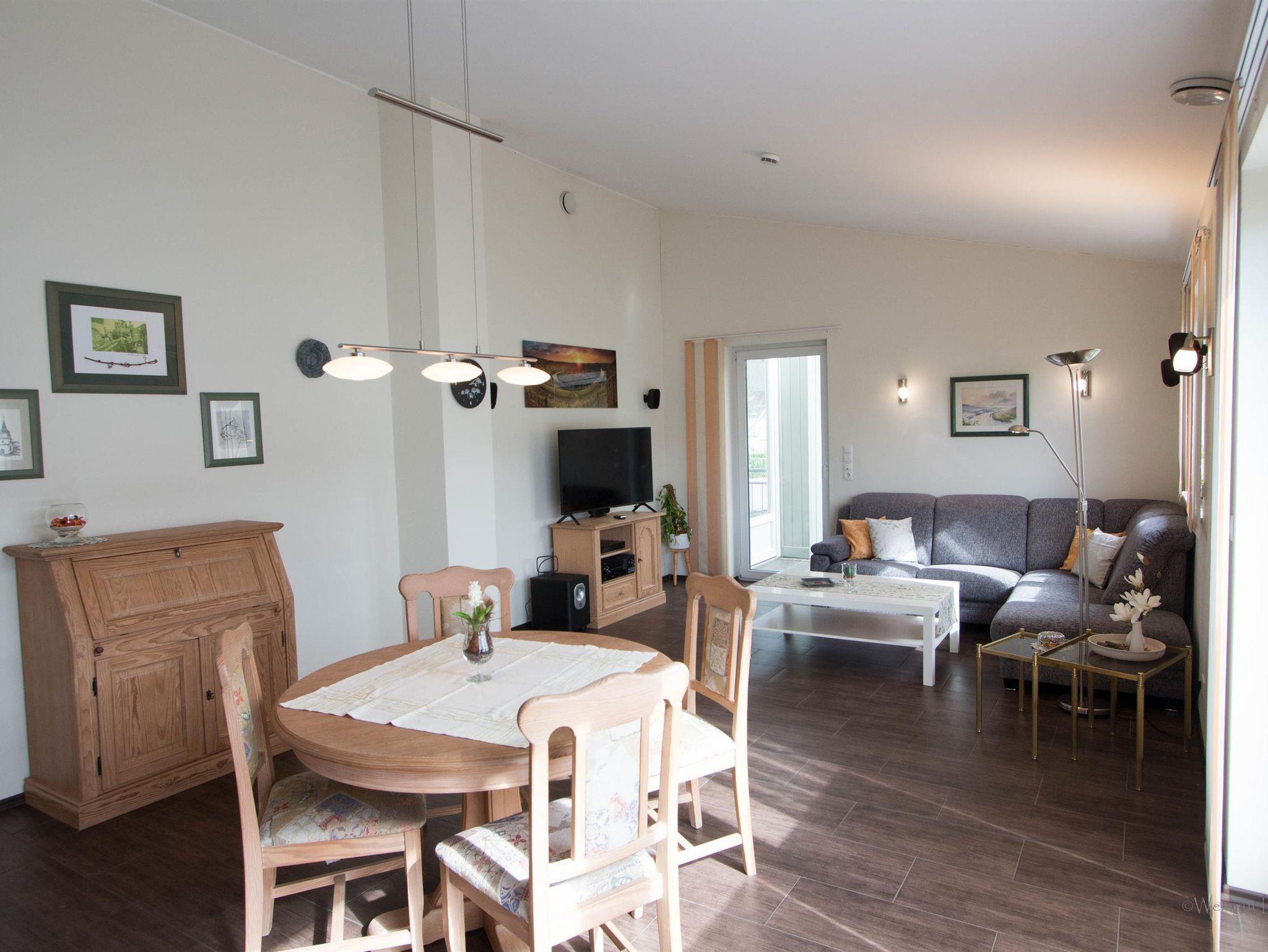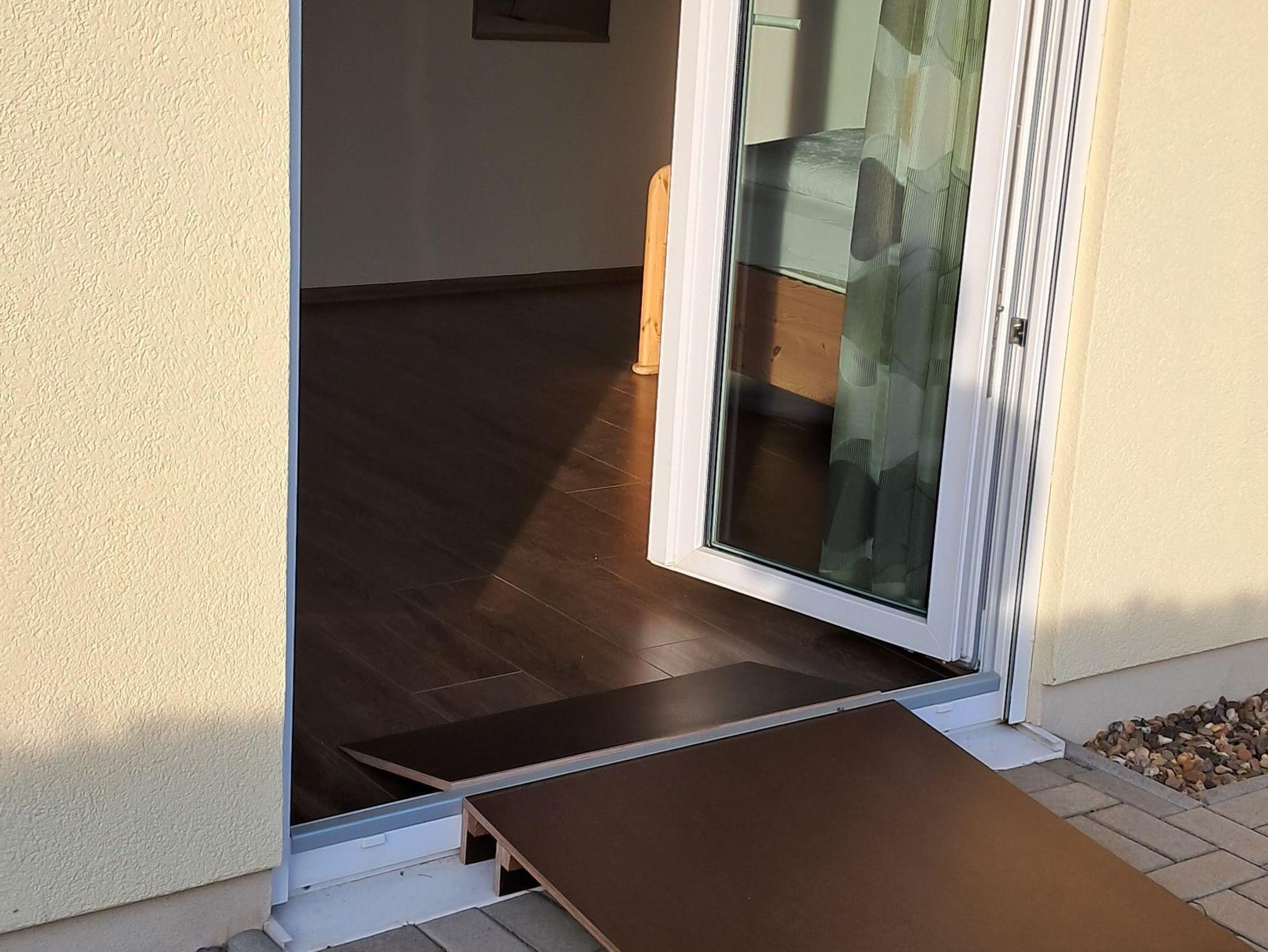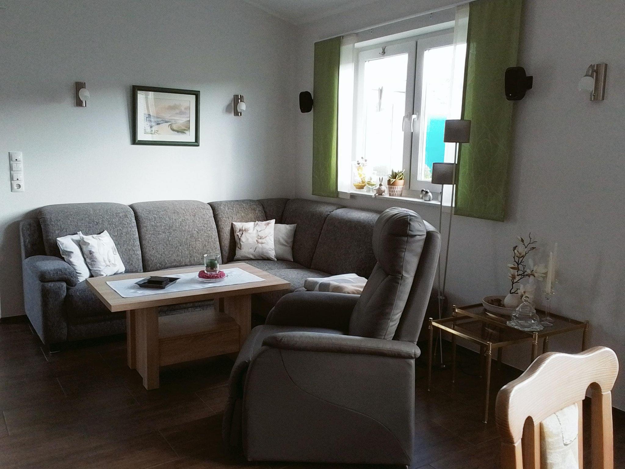 ...in unserem Ferienhaus. Das barrierefreie Niedrig-Energie-Ferienhaus mit Fußbodenheizung und Lüftung (100 m²) ist für 2 Personen (Kind bis 2 Jahre auf Anfrage möglich) geeignet. Es verfügt über einen großzügigen Wohn- und Essbereich, eine große Küche, ein Doppel-Schlafzimmer mit Bad, Gäste WC und einen schönen Wintergarten. Es ist für Rollator und Rollstuhl geeignet. Im großen Bad befindet sich eine ebenerdige befahrbare Dusche. Es gibt zwei Waschgelegenheiten, eine davon ist unterfahrbar. Die Küche ist mit Rollator gut zu nutzen, für Rollstuhl weniger geeignet. Der Eingangs Bereich ist mit einer Rampe zur Haustüre und einer Rampe zum Wintergarten ausgestattet. Vom Wintergarten kommt man in den Garten des Ferienhauses mit Sitzgelegenheit.