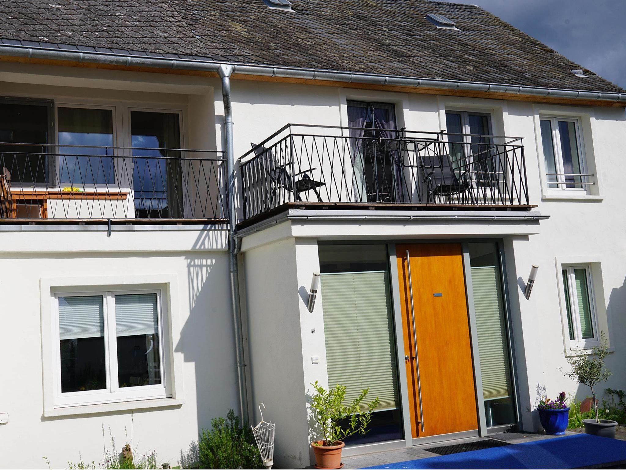 Große Ferienwohnung (= eine komplette Haushälfte, ca. 120 m² Wohnfläche) mit separatem Hauseingang! Bietet eine voll ausgestatte Küche mit großem Essplatz, 2 Doppel-Schlafzimmer mit Balkon im OG, 2 Bäder: 1 Bad mit Dusche im EG und 1 Bad mit Badewanne im OG. Auf Wunsch zusätzliche Schlafmöglichkeit im Wohnzimmer auf einem bequemen Sofa für 2 Personen. Die Ferienwohnung Meine Tante lädt Sie herzlich ein Ihren entspannten Urlaub an der Mosel zu verbringen. Im Außenbereich (Zum Haus gehörender Innenhof) steht Ihnen ebenfalls viel Platz, auch ein überdachter Sitzplatz, zur Verfügung. Ein Parkplatz für 2 Fahrzeuge ist vorhanden. Bei Buchung der Wohnung für 1-2 Personen kann nur ein Schlafzimmer genutzt werden. Benutzung des 2. Schlafzimmer gegen Aufpreis möglich. Freuen Sie sich auf Ihren Aufenthalt bei Meine Tante: