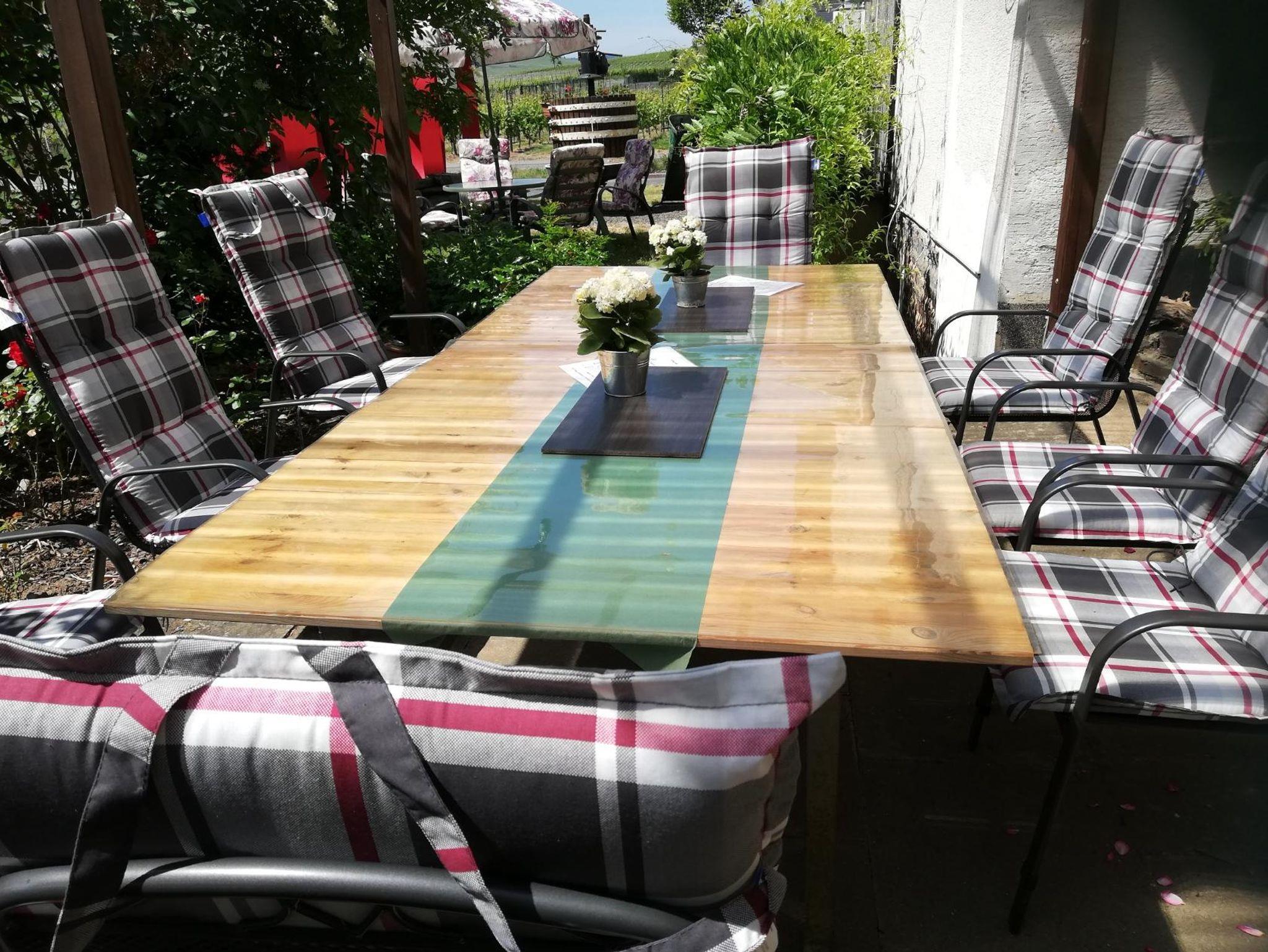 Am Ortsrand, umgeben von Weinbergen, liegt unser Ferienweingut. Schon seit 1780 widmet sich unsere Familie dem Weinbau. In unserer rustikalen Weinstube und Strausswirtschaft können Sie sich bei einem Gläschen Wein entspannen. Gemütlich eingerichtete Doppelzimmer mit TV, Radiowecker, Dusche/WC und Blick in die Weinberge, bzw. auf die Mosel laden zum Erholen und Entspannen ein. Ausserdem halten wir ein modernes Appartment mit TV, überdachtem Balkon, Dusche u. WC für Sie bereit. Auf Wunsch führen wir Weinproben, Kellerbesichtigungen, Weinbergswanderungen und Grillabende durch. Bei sonnigem Wetter können Sie auch gerne in unserem Garten mit kleinem Teich ein Glas Wein oder Secco genießen.
