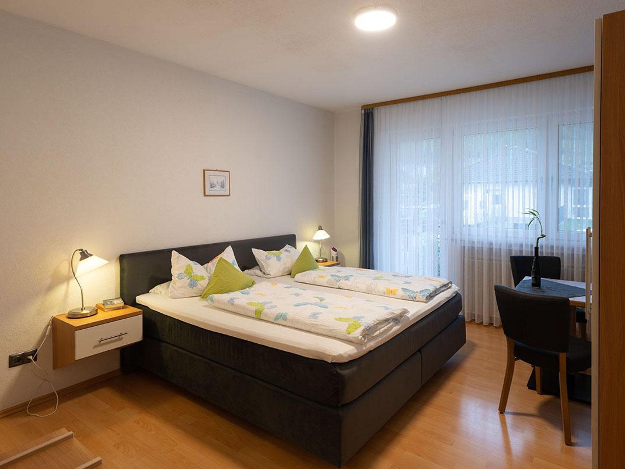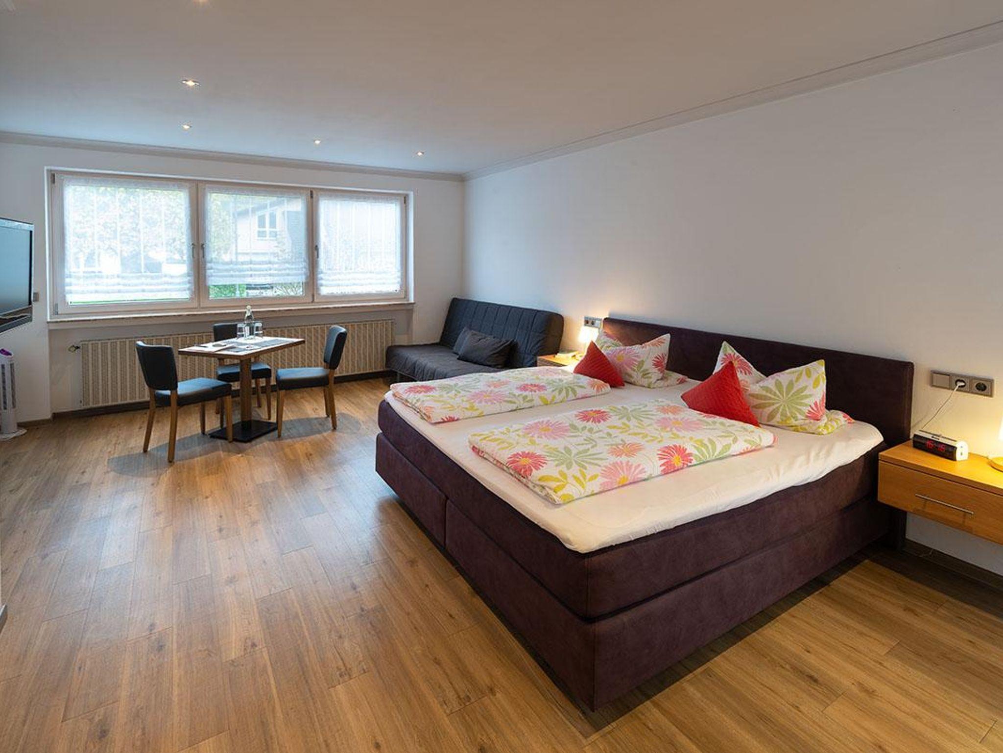 Freundliches und ruhiges Doppelzimmer, komfortabel eingerichtet, ca. 30 m² groß , Sat-TV vorhanden; Das Zimmer liegt im Erdgeschoss und hat Zugang zur Terrasse. Eine Schlafcouch ( 1,40 m breit ) bietet Platz für einen Erwachsenen oder zwei Kinder. Ein Kinderbett oder weiteres Zustellbett sind buchbar. Das Zimmer ist für Allergiker geignet.