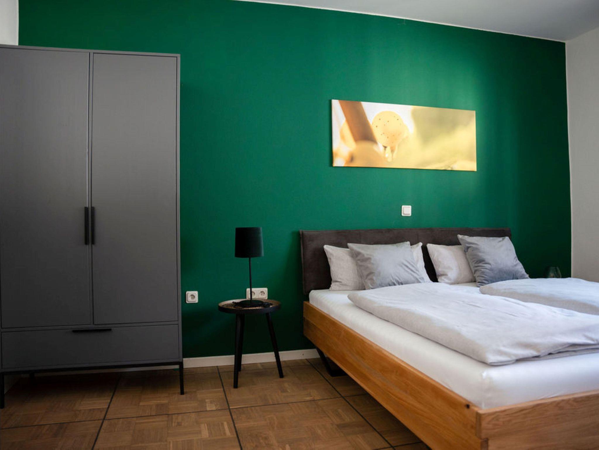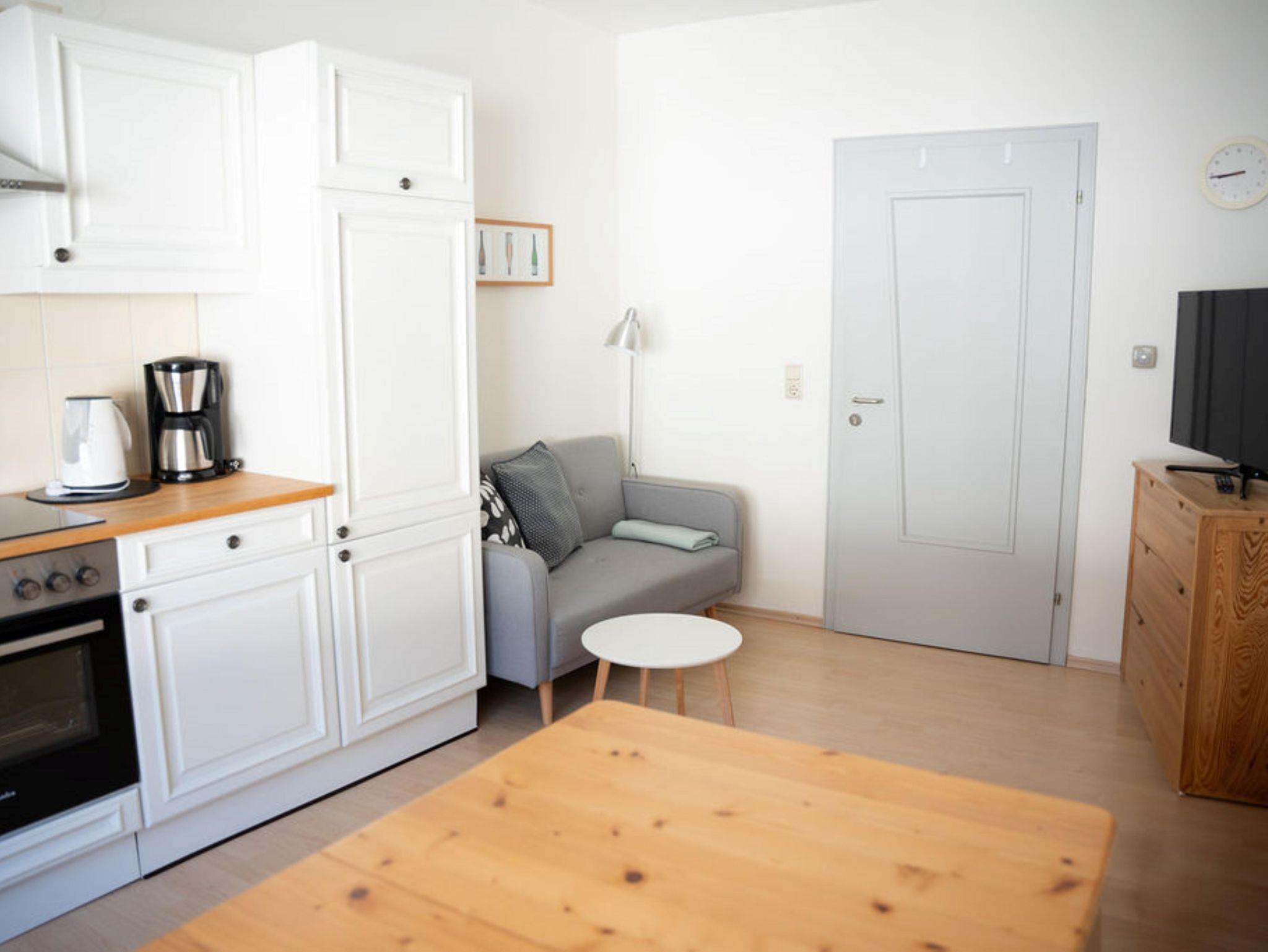 Die moderne Einrichtung schafft eine angenehme Atmosphäre. Besonders ansprechend ist das neu eingerichtete Schlafzimmer (Renovierung 2023) mit Doppelbett und zusätzlichem Einzelbett. Kombinierter Wohn- und Küchenbereich mit Essecke, Sofa und Smart-TV. Komplette Küchenausstattung (Backofen mit Herd, Filterkaffeemaschine, Kühlschrank mit Gefrierfach, Toaster, Wasserkocher, Geschirr, Töpfe etc.). Das Badzimmer mit Dusche & WC ist klein, aber es ist alles da, was benötigt wird. Max. 3 Personen können hier gut wohnen (Kinder bis 5 Jahre frei). Bettwäsche und Handtücher werden zur Verfügung gestellt (Küchenwäsche bitte mitbringen). Unser kleiner Garten kann gerne mitbenutzt werden. Wir möchten Sie höflich darauf hinweisen, dass unsere Zimmer/Wohnungen Nichtraucherzimmer sind und Haustiere nicht erlaubt sind.